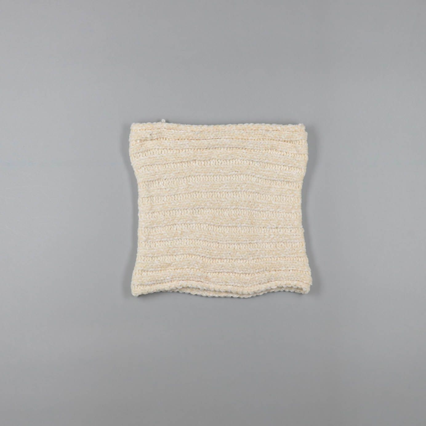 Вязаный снуд в молочно-бежевом цвете, мягкий и объёмный. Подойдёт для зимних прогулок и поездок, хорошо сочетается с пуховиками и пальто. Удобен тем, что не развязывается и быстро надевается через голову.
