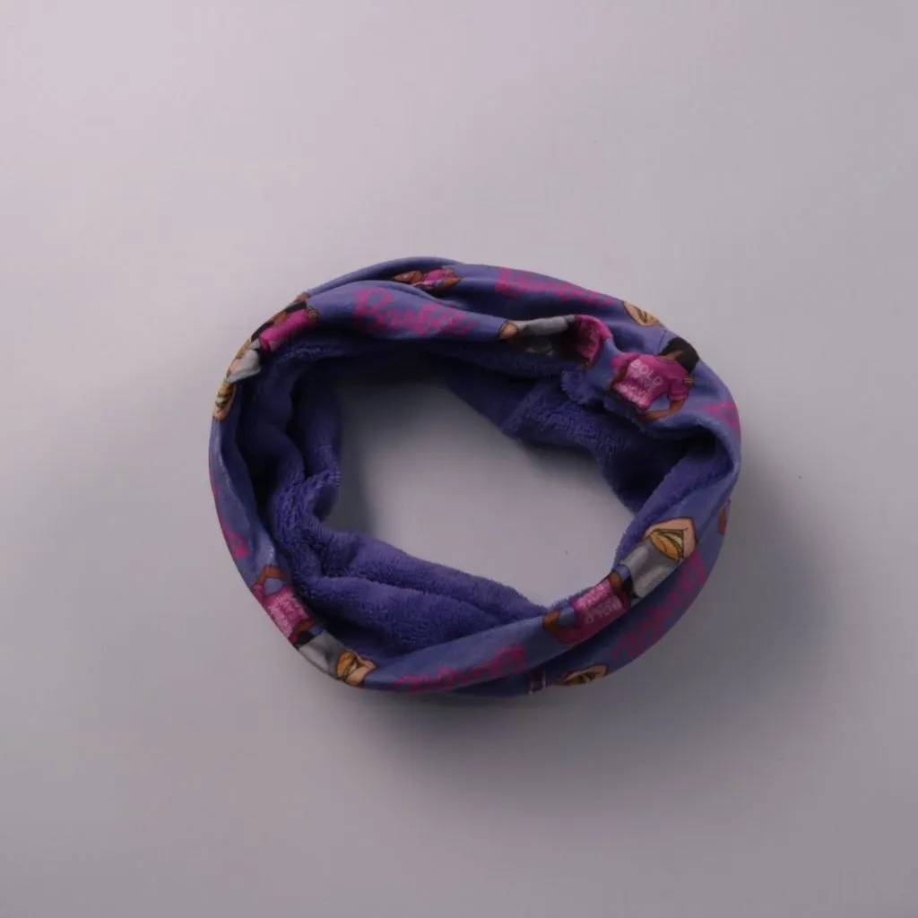 Снуд Barbie фиолетового цвета с принтом, внутри мягкая флисовая подкладка. Подойдёт для зимних прогулок и демисезонной погоды, удобно носить с курткой и шапкой. Хорошо закрывает шею и быстро надевается без завязок.