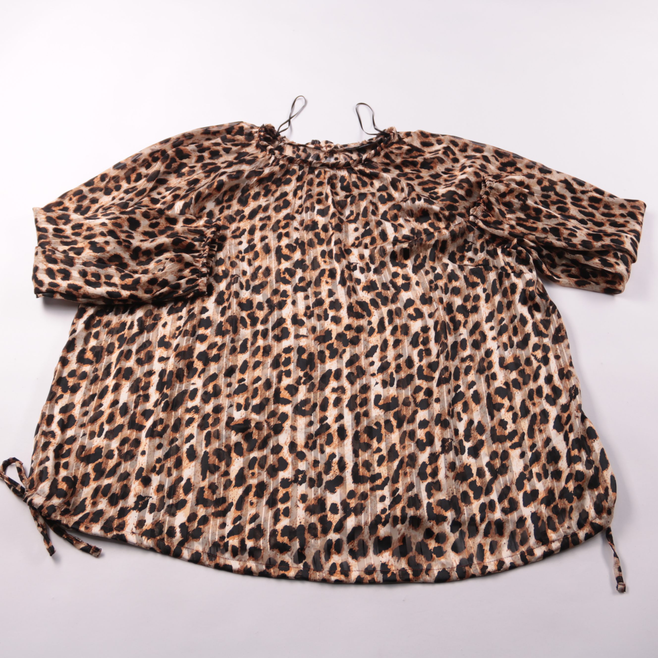 Блузка George с леопардовым принтом, лёгкая и свободного кроя, с присборенной горловиной и рукавами 3/4. Подойдёт для школы, праздника или повседневных образов с джинсами/юбкой. Ткань тонкая и быстро сохнет после стирки.