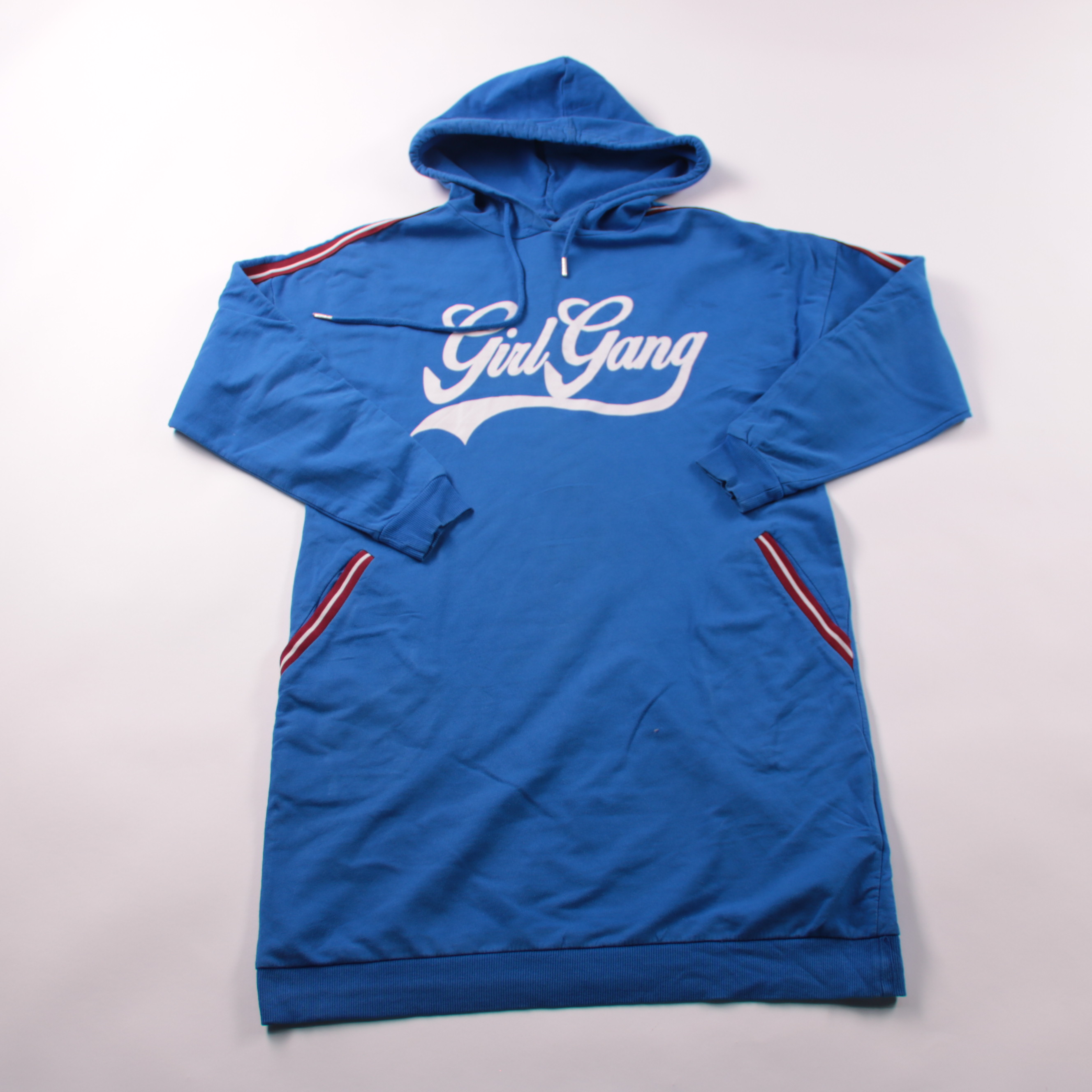 Худи Girl Gang ярко-синего цвета с капюшоном и крупной надписью спереди. Подойдёт для прогулок и школы в прохладную погоду, удобно носить как второй слой. Мягкий хлопковый материал и карманы по бокам делают её практичной на каждый день.