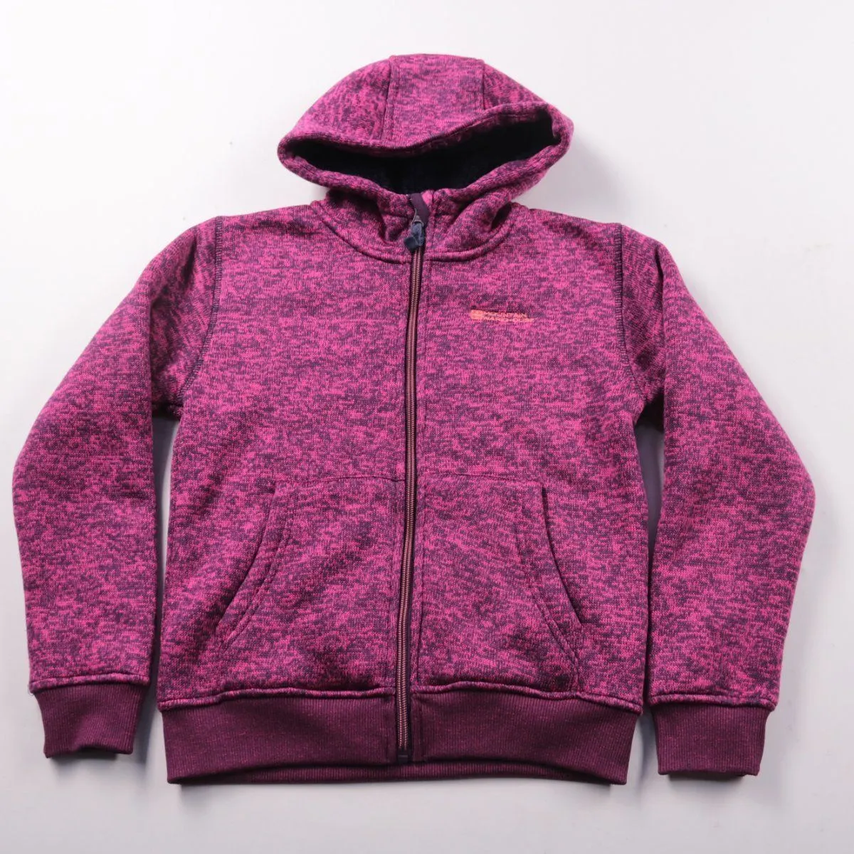 Толстовка Mountain Warehouse на молнии с капюшоном, в розово-бордовом меланже. Подойдёт для прогулок и повседневной носки в прохладную погоду, есть карманы-«кенгуру». Внутри мягкая фактура и широкие манжеты, которые лучше держат тепло.