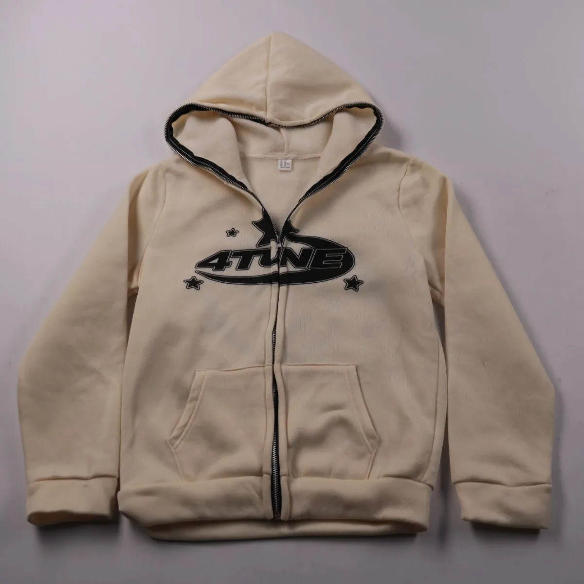Толстовка на молнии с капюшоном и карманами-кенгуру, с принтом 4TUNE спереди и сзади. Подойдёт для школы и прогулок в прохладную погоду. Практична тем, что быстро надевается и регулируется по теплу за счёт застёжки-молнии.
