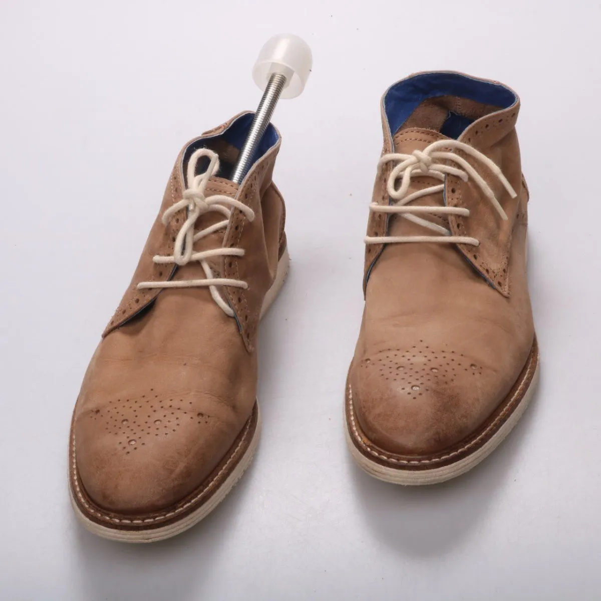 Мужские кожаные ботинки Helen Billkrantz в коричневом цвете, с перфорацией на мысе и шнуровкой. Подойдут для повседневной носки в демисезон с джинсами и брюками. Практичная светлая подошва с прошитым рантом хорошо держит форму.
