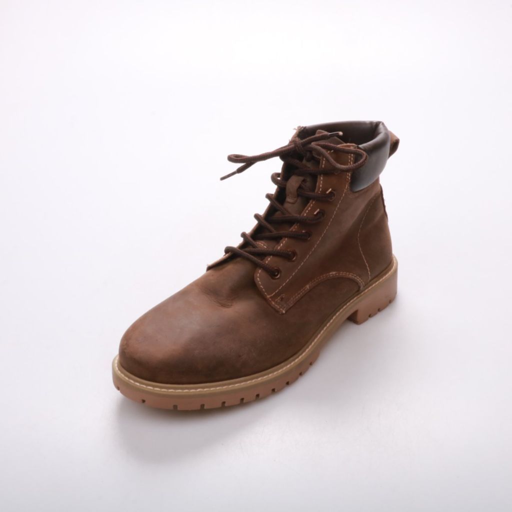 Мужские ботинки на шнуровке из коричневой кожи с мягким воротником. Подойдут для повседневной носки в городе в прохладную погоду. Рифлёная подошва даёт более уверенное сцепление на мокром асфальте.