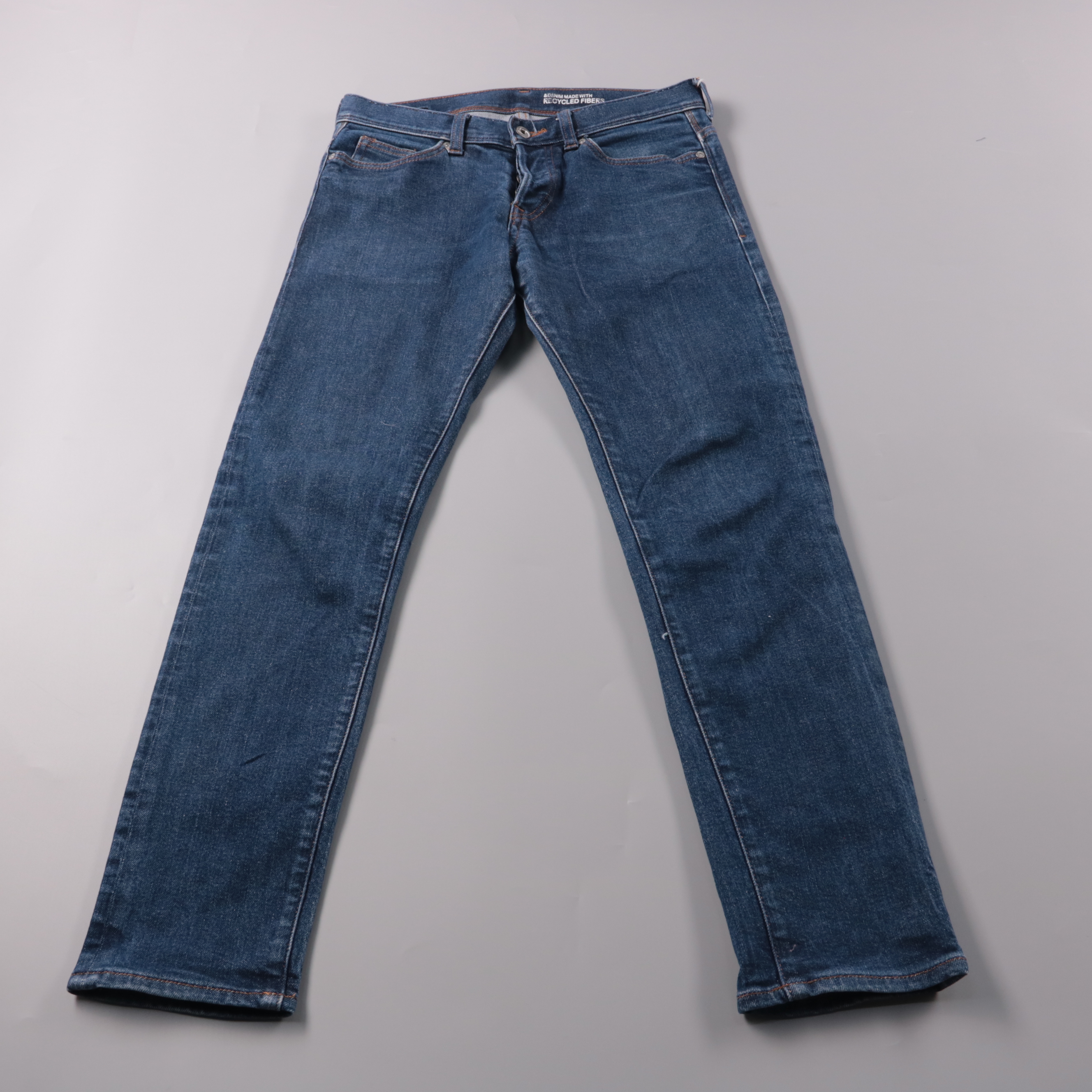 Мужские джинсы H&M Slim Low Waist из синего денима, слегка зауженный крой. Подойдут для повседневной носки в городе и офиса с нестрогим дресс-кодом, легко сочетаются с футболками и рубашками. Плотная ткань со стрейчем даёт более комфортную посадку и св...