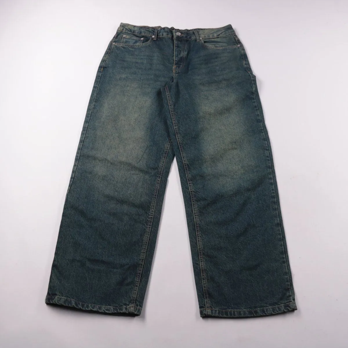 Мужские джинсы BoohooMAN из денима синего цвета с заметным эффектом выварки. Подойдут для повседневной носки и сочетаний с кедами или ботинками. Плотный хлопок хорошо держит форму и рассчитан на частую носку.