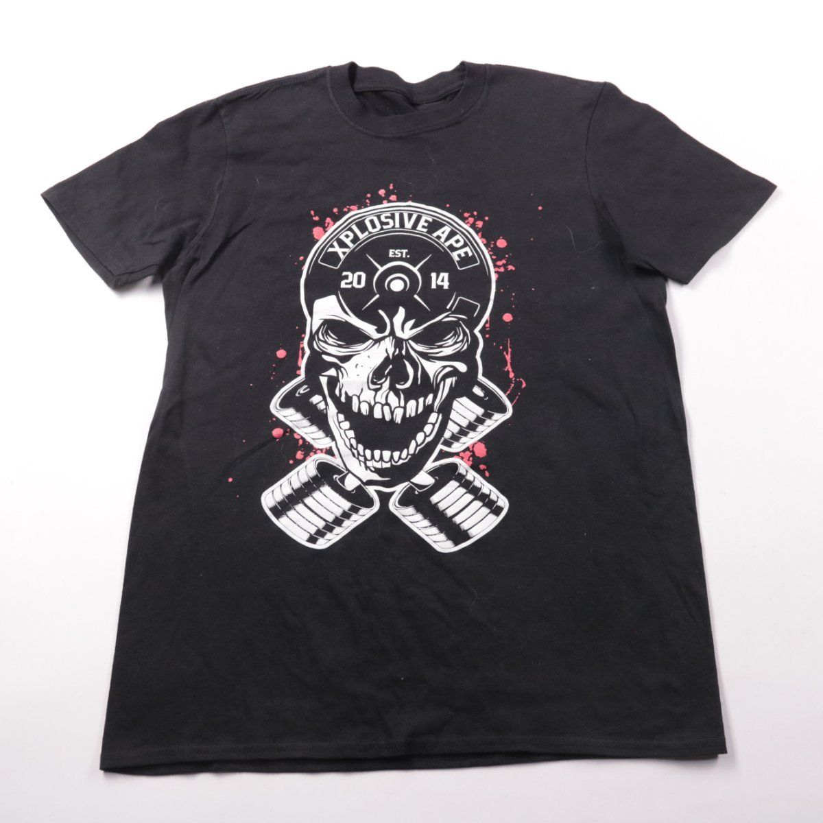 Мужская футболка Xplosive Ape чёрного цвета с крупным принтом черепа и красными брызгами спереди. Подойдёт для повседневной носки и уличного стиля, хорошо сочетается с джинсами и кроссовками. Натуральный хлопок preshrunk приятен к телу и меньше садится после стирки.