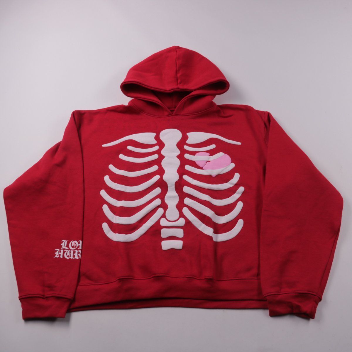 Мужское худи boohooman красного цвета с крупным принтом (рёбра/сердце) спереди и надписью на спине. Подойдёт для повседневных образов и прогулок в прохладную погоду. Мягкий материал с добавлением полиэстера легче в уходе и держит форму.