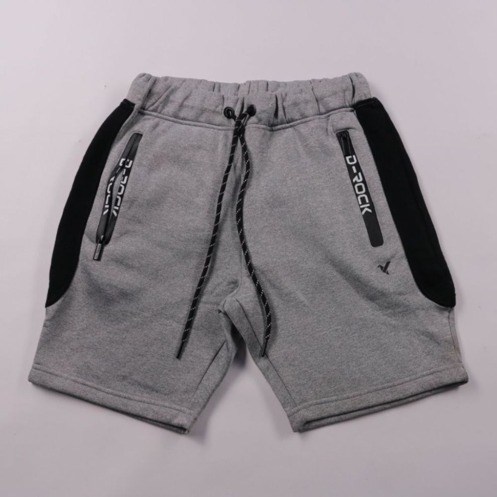 Мужские спортивные шорты D-Rock серого цвета с чёрными вставками и утяжкой на поясе. Подойдут для тренировок, прогулок и дома, есть карманы на молнии. Лёгкий полиэстер быстро сохнет и прост в уходе.