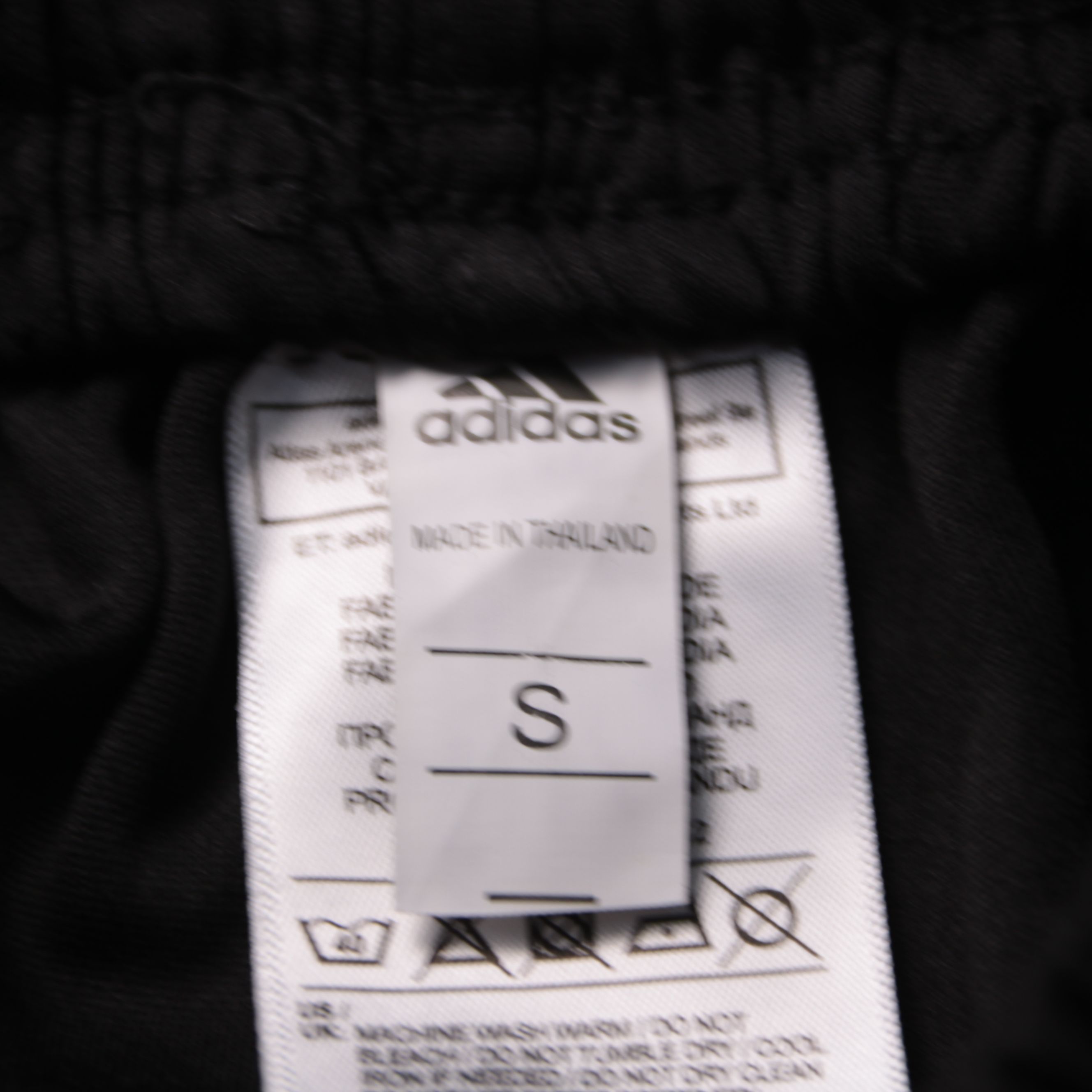 Мужские спортивные брюки Adidas чёрного цвета с контрастными белыми лампасами и логотипом. Подойдут для тренировок, прогулок и повседневного спорта в зале или на улице. Эластичный пояс обеспечивает удобную посадку и комфорт в движении.