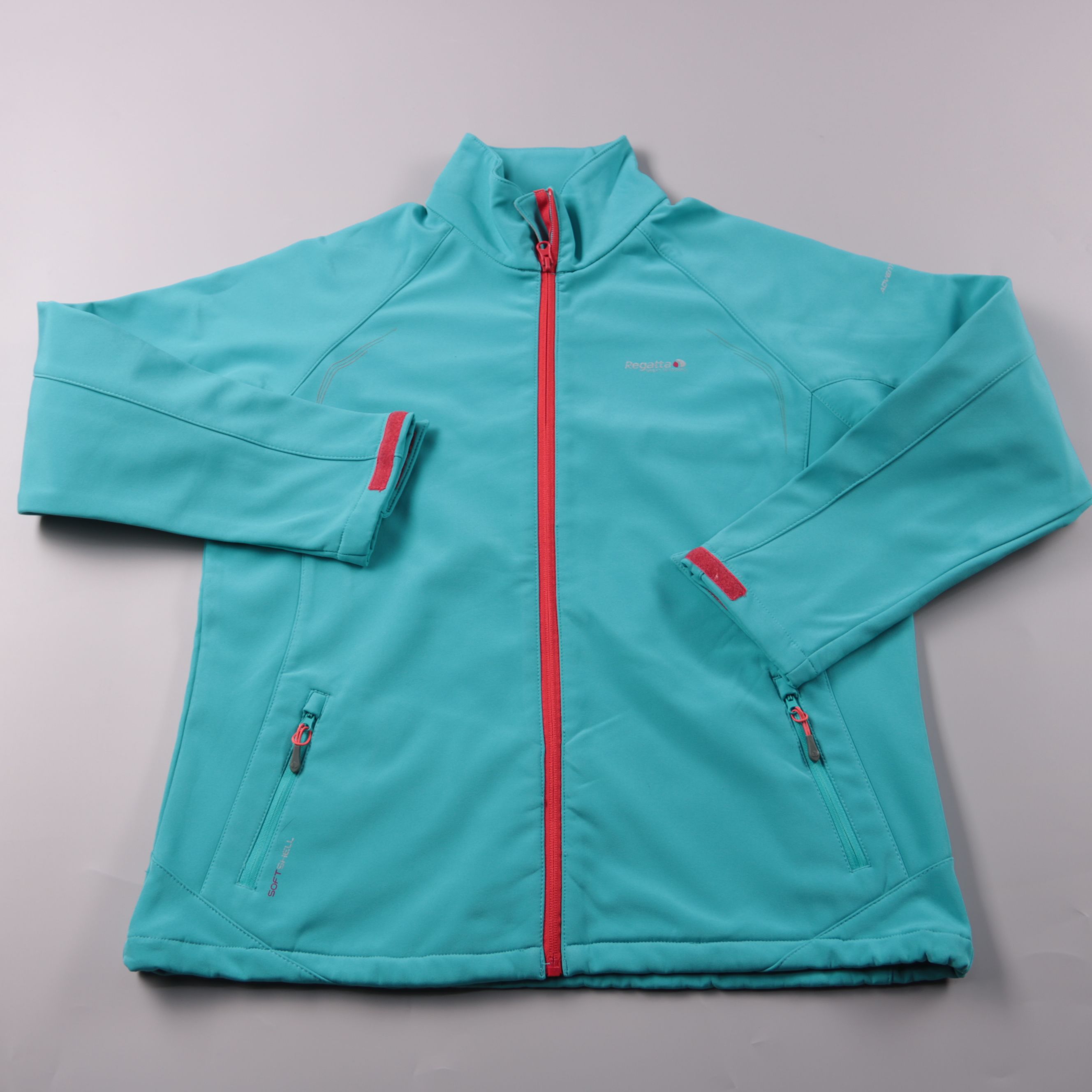 Женская софтшелл-куртка Regatta бирюзового цвета с контрастной красной молнией и карманами на молниях. Подойдёт для прогулок и активного отдыха в прохладную ветреную погоду. Практичный плюс — ткань softshell с ветрозащитными и водоотталкивающими свойст...