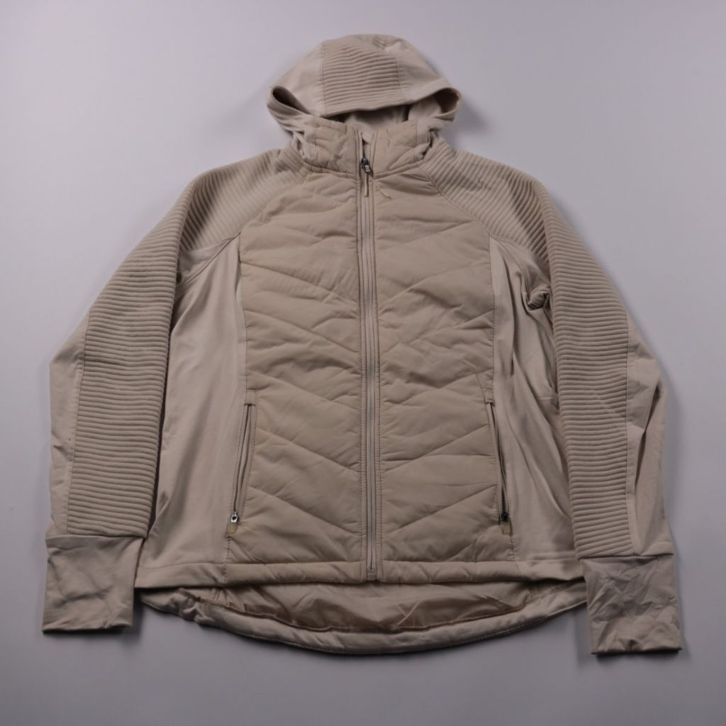 Демисезонная куртка H&M Sport бежевого цвета с капюшоном и центральной молнией, с простёжкой на груди и фактурными вставками на рукавах. Подойдёт для прогулок и активного города в прохладную погоду, удобно носить как верхний слой поверх худи. Лёгкий си...