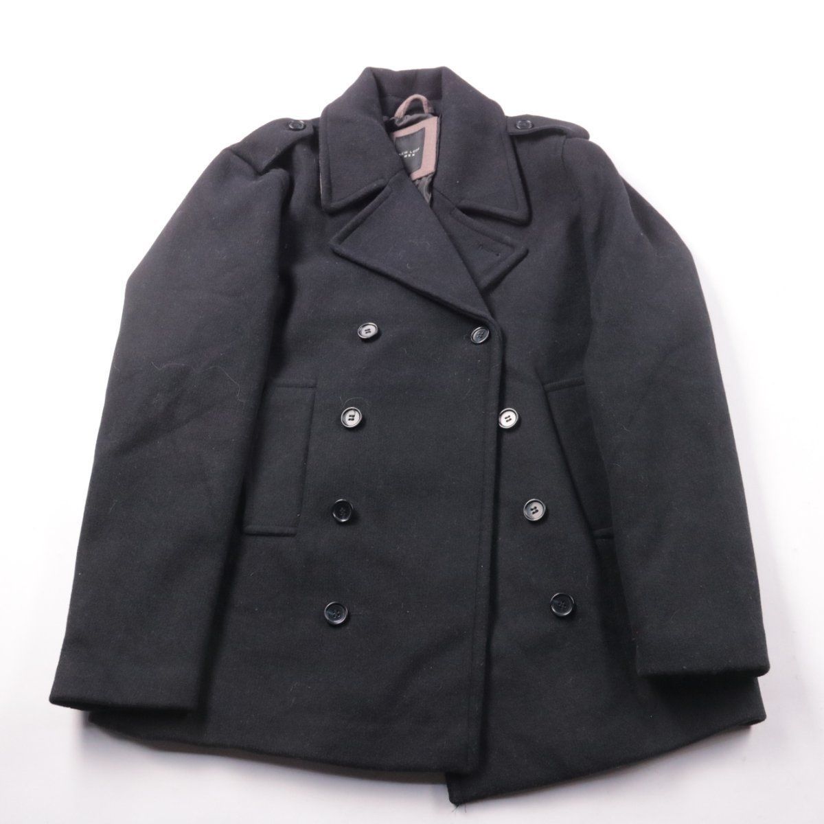 Мужское двубортное пальто New Look Men чёрного цвета, укороченный классический крой с широкими лацканами и пуговицами. Подойдёт для города и офиса в прохладную погоду, легко сочетать с джинсами и брюками. Плотная смесовая ткань держит форму и практична в носке.