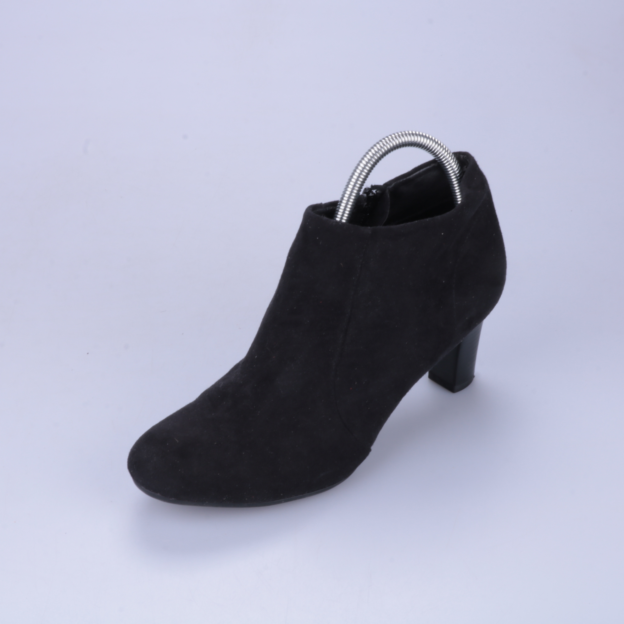 Ботильоны Graceland из чёрного текстиля под замшу на устойчивом каблуке и с молнией сбоку. Подойдут для повседневных и офисных образов в демисезон. Практичное преимущество — удобная посадка и устойчивый каблук, в них комфортно ходить весь день.