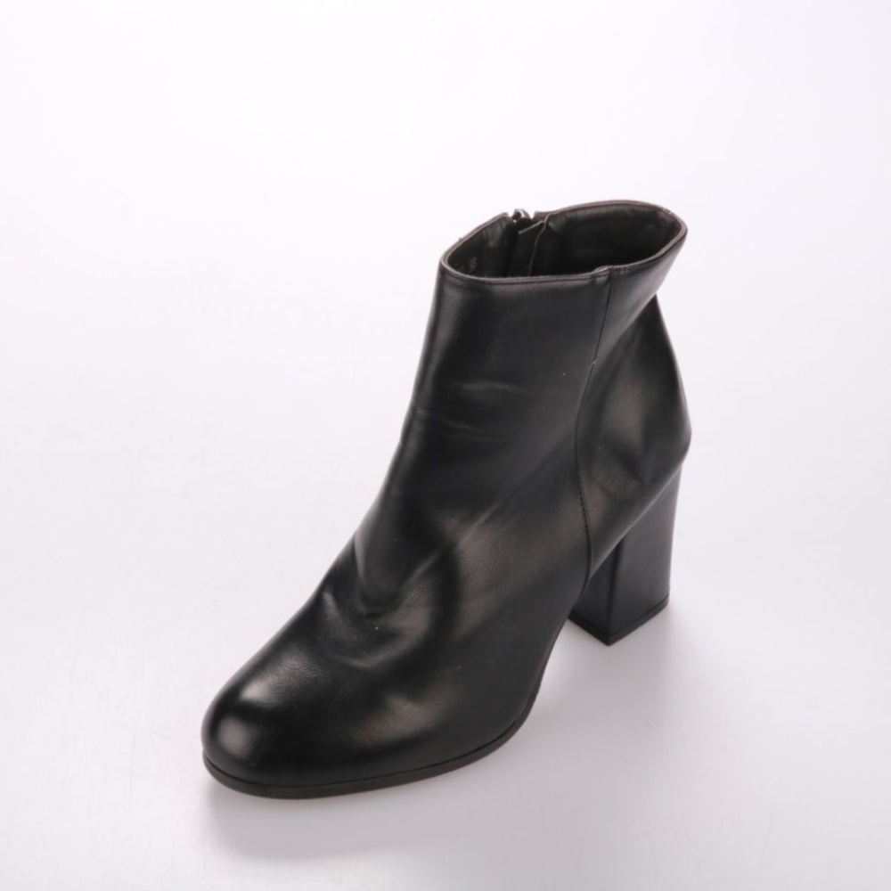 Женские ботильоны Marquiiz из чёрной гладкой кожи на устойчивом каблуке и с застёжкой-молнией сбоку. Подойдут для осени/весны и городских образов с джинсами или платьем. Практичное преимущество — удобный каблук-столбик и быстрая посадка за счёт молнии.