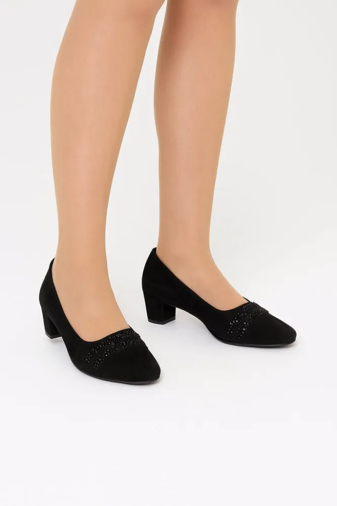 Туфли Gabor comfort из чёрного материала с декоративной вставкой из мелких страз на мысе и устойчивым каблуком. Подойдут для офиса и повседневных выходов, когда нужен аккуратный и сдержанный образ. Рифлёная подошва помогает меньше скользить на гладких ...