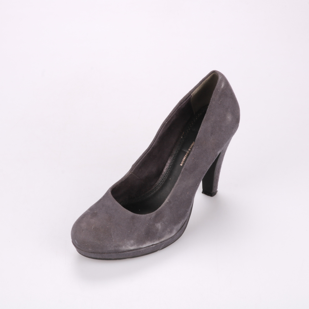 Туфли Marco Tozzi из искусственной замши серого цвета на устойчивом каблуке и с небольшой платформой. Подойдут для офиса и вечерних выходов, легко сочетаются с платьями и брюками. Удобная колодка и нескользящая подошва дают комфорт при ходьбе.