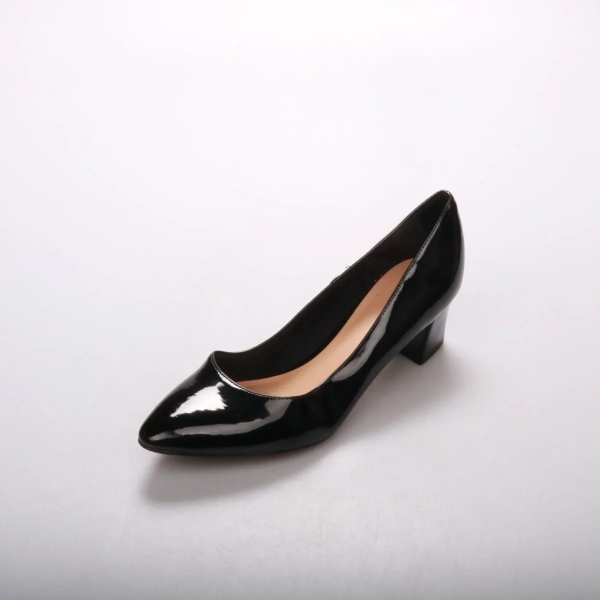 Женские лакированные туфли Graceland чёрного цвета на устойчивом каблуке с заострённым носком. Подойдут для офиса, мероприятий и повседневных образов, когда нужна аккуратная классика. Лаковый верх легко протирать, а устойчивый каблук удобнее при ходьбе.