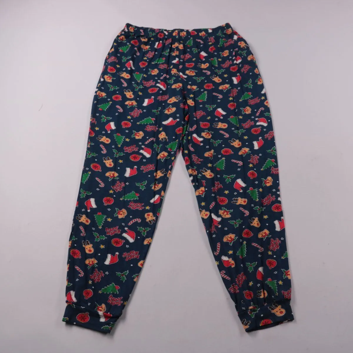 Женские брюки In The Style с эластичным поясом и манжетами внизу, в новогоднем принте на тёмно-синем фоне. Подойдут для дома и отдыха, ткань мягкая и тянется за счёт эластана. Практичны тем, что не сковывают движения и комфортно сидят на талии.