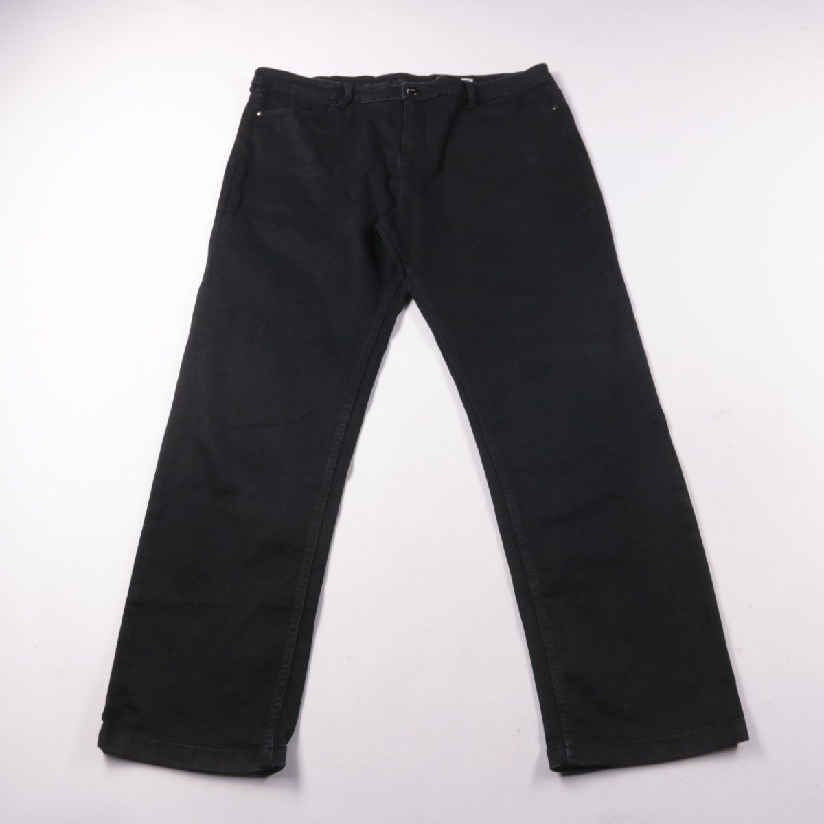 Женские чёрные брюки M&S прямого кроя из плотной ткани с небольшим добавлением эластана. Подойдут для повседневных и офисных образов, легко сочетаются с базовым гардеробом. Практичны в носке: ткань держит форму и комфортно тянется.