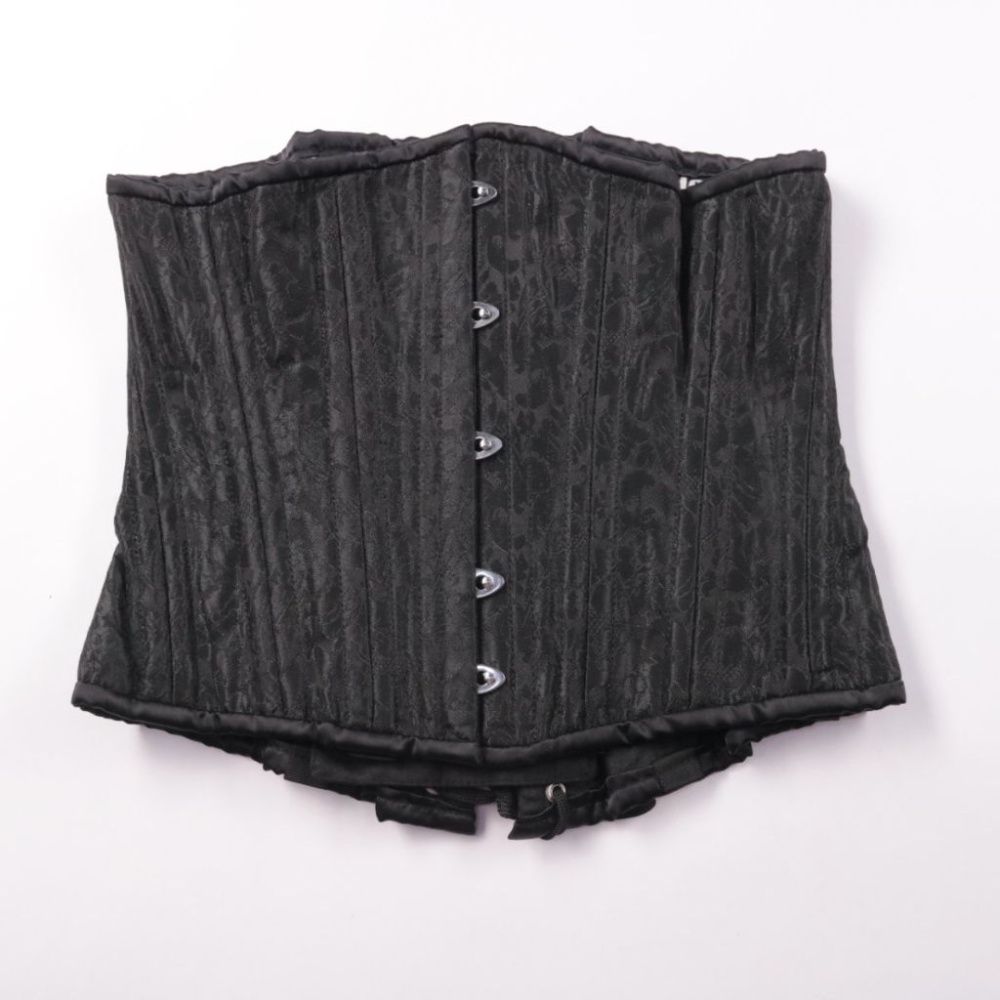 Корсет Mode Wichtig чёрного цвета с жаккардовой фактурой и застёжкой на крючки спереди. Подойдёт для вечернего образа или фотосессии, а также как акцентный слой поверх рубашки или платья. Плотно держит форму и хорошо утягивает талию за счёт жёсткой кон...