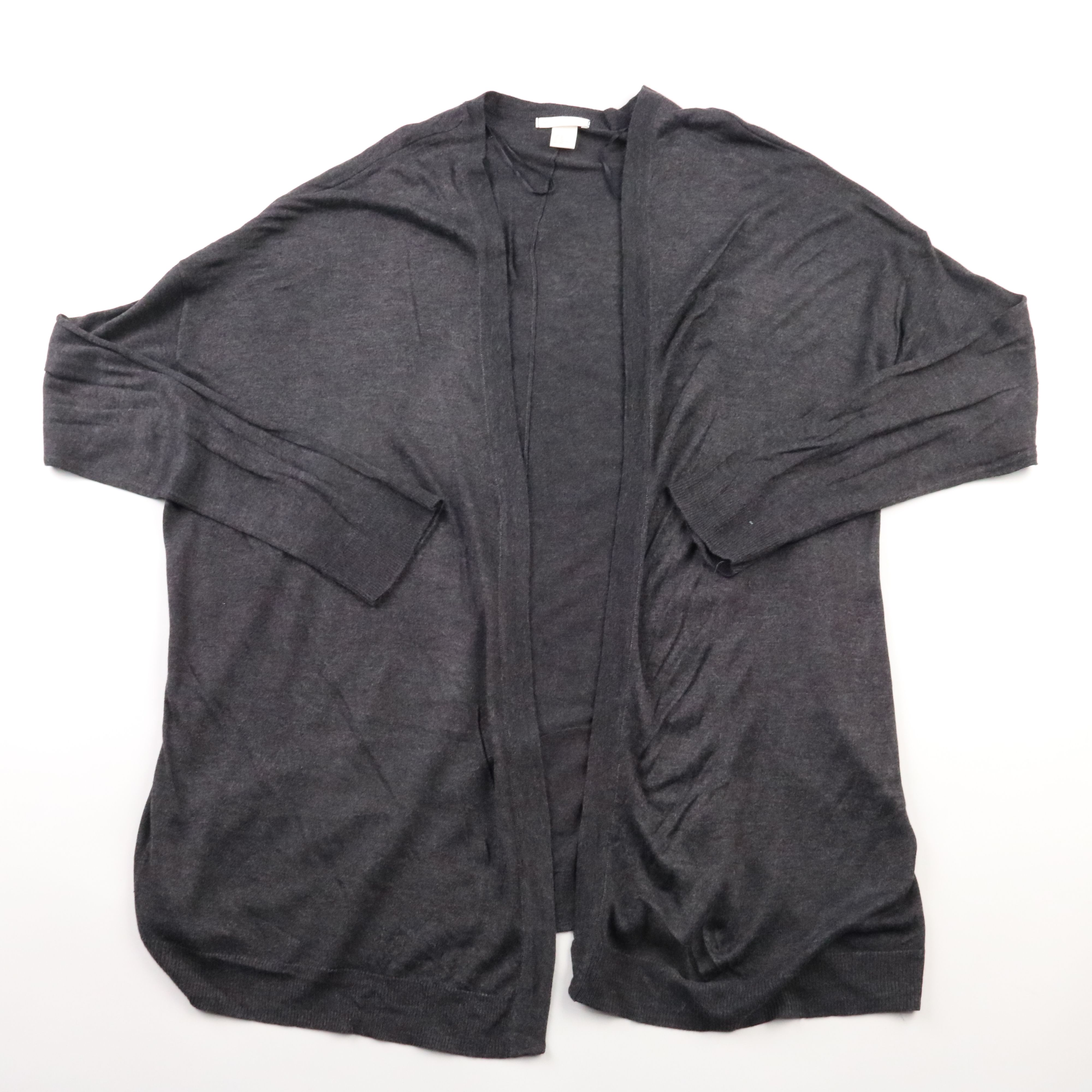 Женский кардиган H&M Basic тёмно-серого цвета, мягкий и тонкий трикотаж. Подойдёт для офиса и на каждый день как лёгкий верхний слой поверх топа или рубашки. Удобно брать с собой: компактно складывается и не утяжеляет образ.