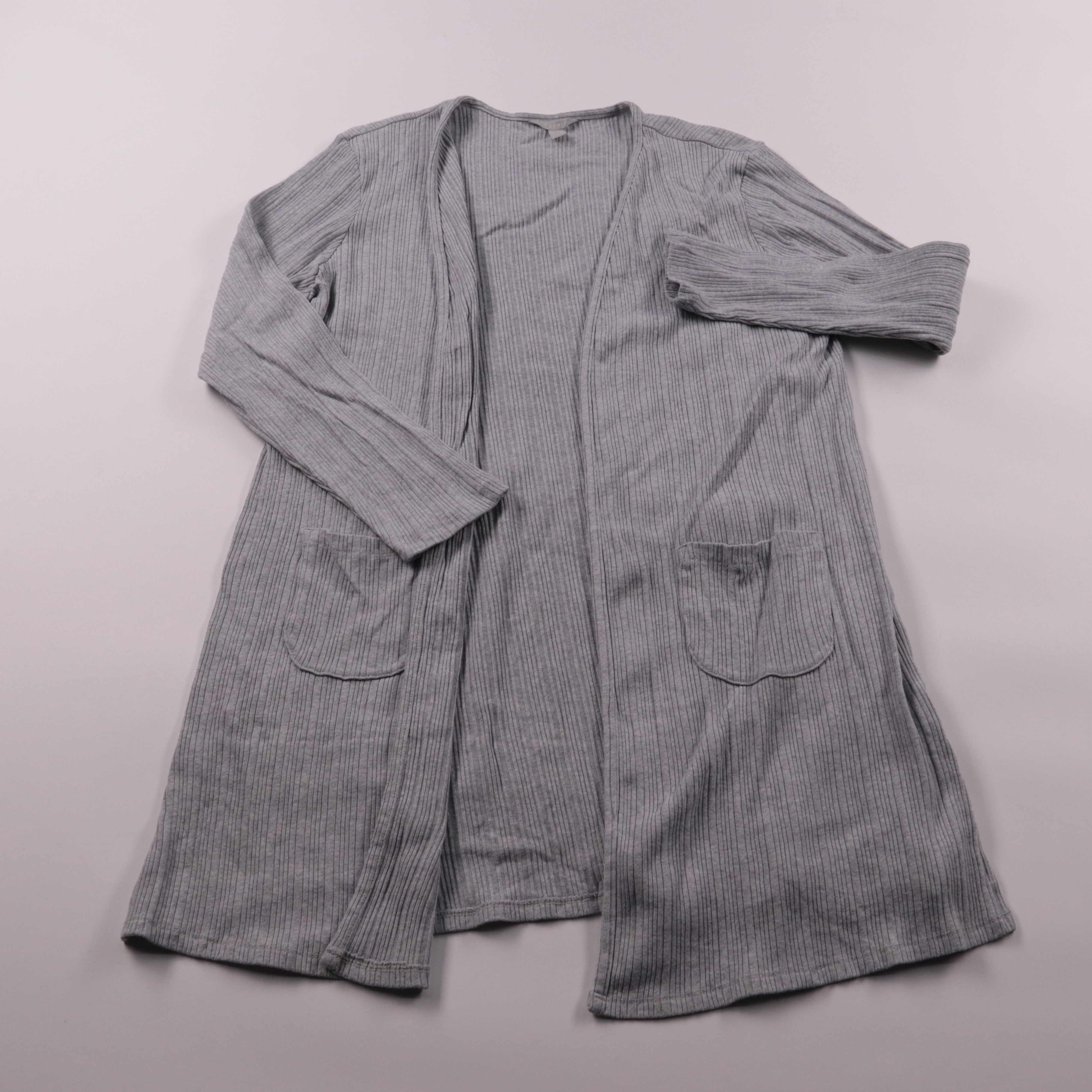 Трикотажный кардиган Esprit серого цвета в рубчик, удлинённый и без застёжки, с двумя накладными карманами. Подойдёт для повседневных образов и офиса в прохладную погоду, удобно носить как накинутым слоем поверх топа или платья. Мягкий хлопковый трикот...