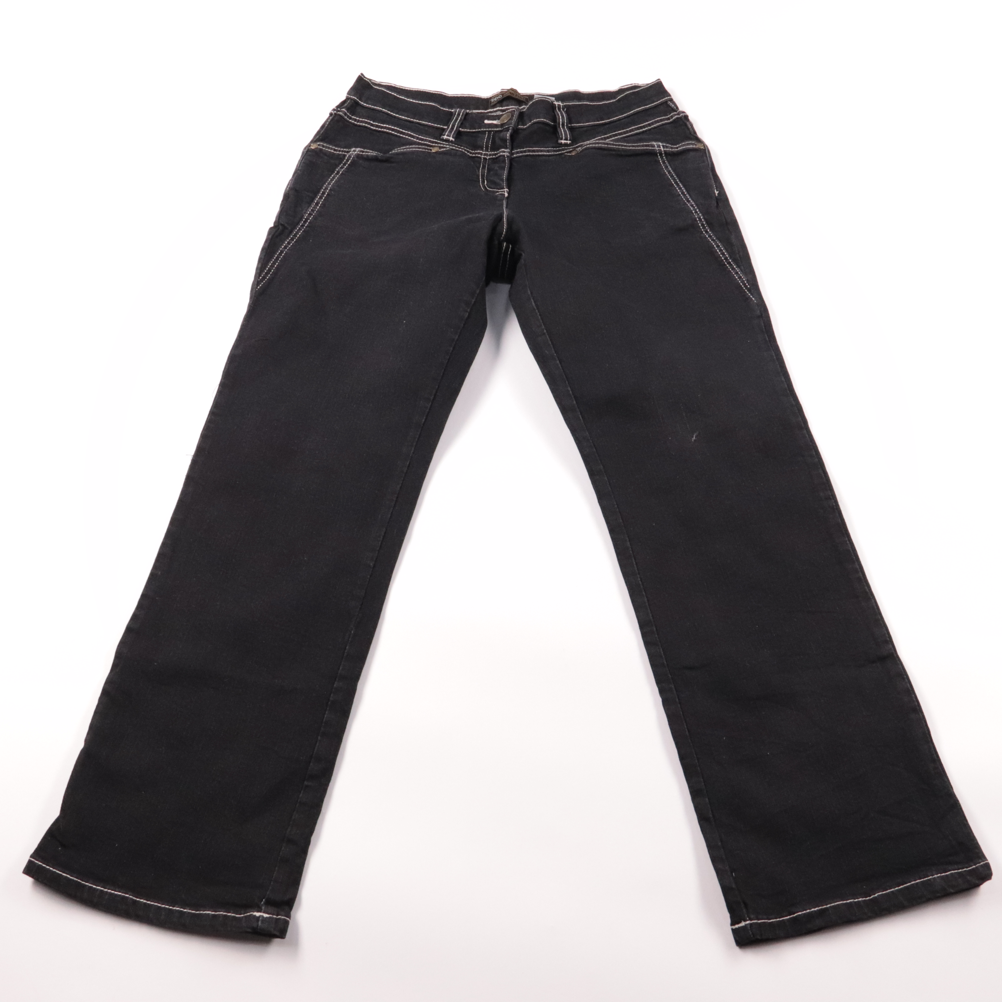 Женские чёрные джинсы Bpc selection (bonprix collection) с контрастной отстрочкой и классической посадкой. Подойдут для повседневных образов и офиса в стиле casual, легко сочетаются с базовыми вещами. Эластан в составе даёт комфортную посадку и немного...