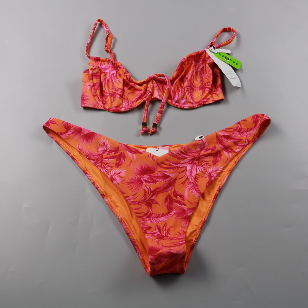 Раздельный купальник Epreve: лиф на косточках с регулируемыми бретелями и завязкой спереди, плавки с высокой посадкой (high leg). Подойдёт для пляжа и отдыха у бассейна благодаря яркому тропическому принту. Эластичная ткань хорошо тянется и быстро сохнет.