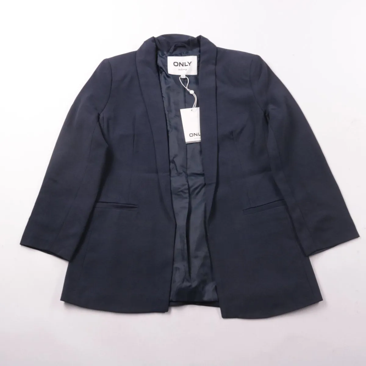 Пиджак Only в тёмно-синем цвете, с подкладкой и прорезными карманами. Подойдёт для офиса и деловых встреч, легко сочетается с брюками и юбками. Практичный материал на основе полиэстера проще в уходе и меньше мнётся.