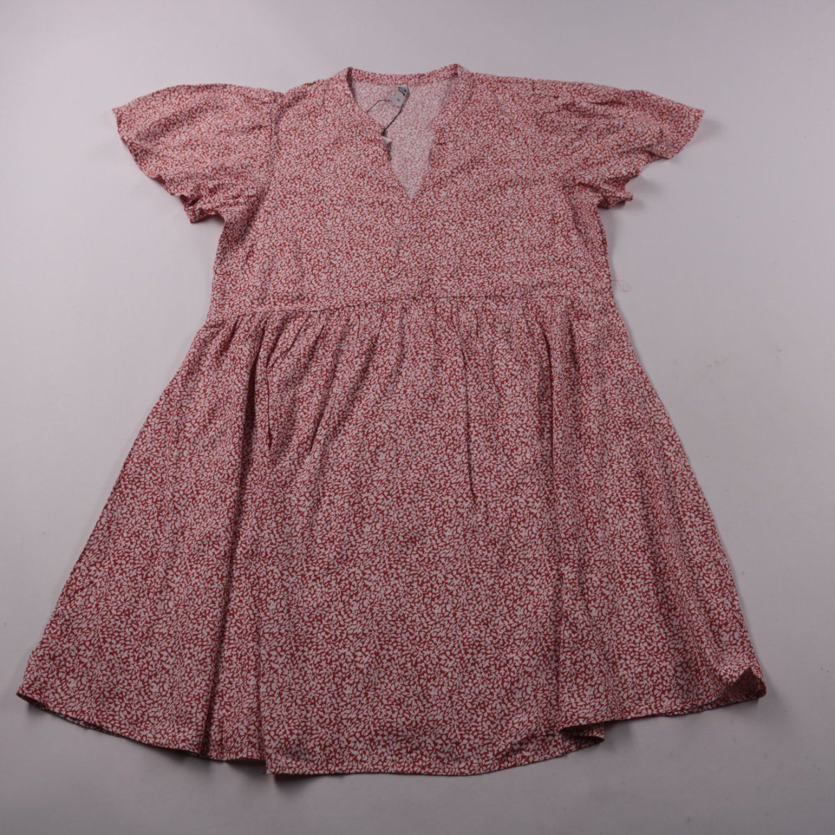 Повседневное платье JDY с V-образным вырезом и короткими рукавами, выполнено из лёгкой вискозы с мелким принтом. Подойдёт для тёплой погоды и городских прогулок благодаря свободному крою с присборенной юбкой. Ткань хорошо дышит и комфортна в носке.