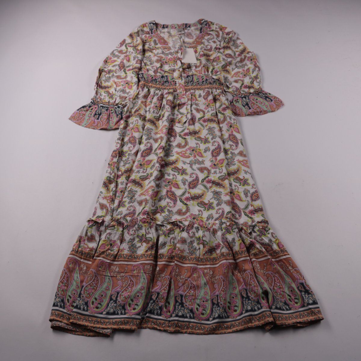 Повседневное платье YAS с принтом пейсли, длинными рукавами и ярусным низом с воланом. Подойдёт для прогулок и отдыха в тёплую погоду, можно носить с сандалиями или кедами. Эластичная сборка на талии помогает комфортно посадить изделие по фигуре.