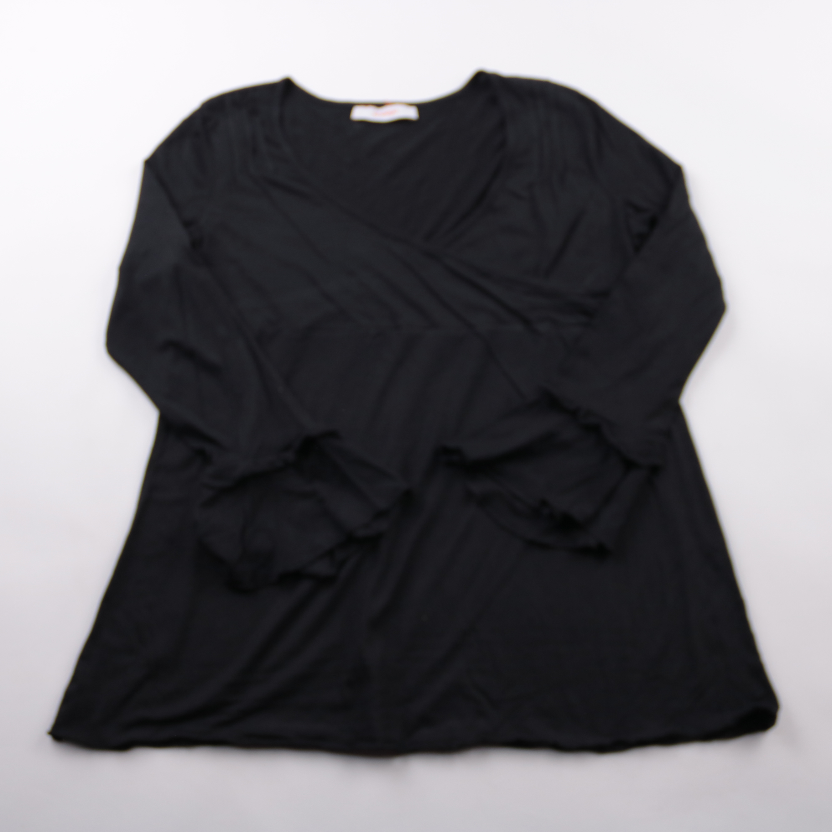 Чёрная блузка Sheego с длинным рукавом и декоративной драпировкой/узлом спереди. Подойдёт для офиса и на каждый день, легко сочетается с брюками и юбками. Мягкая ткань с модалом приятна к телу и комфортно сидит в течение дня.