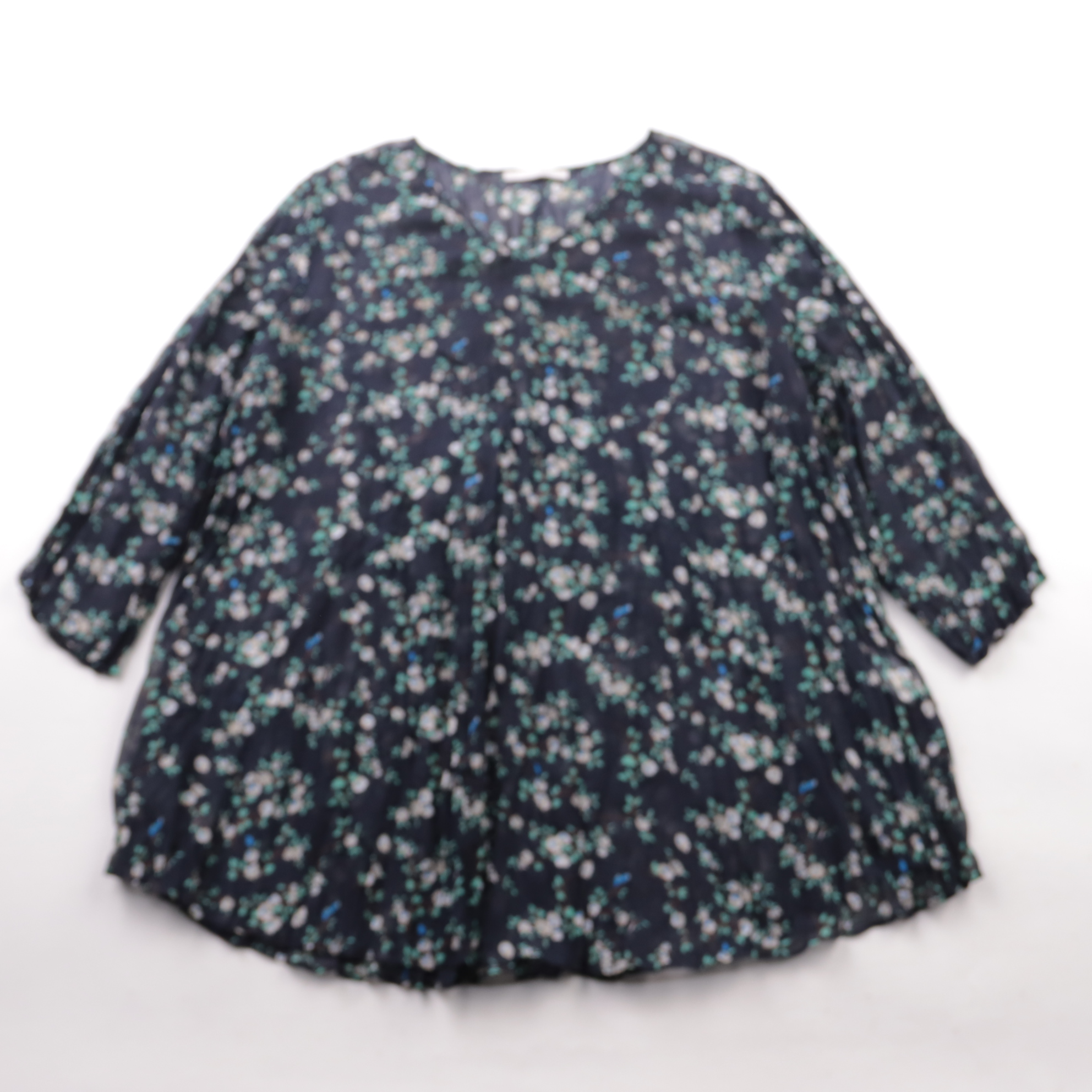 Блузка Create Women из лёгкого полиэстера с цветочным принтом на тёмном фоне и рукавом 3/4. Свободный крой подойдёт для офиса и на каждый день, хорошо сочетается с джинсами и юбками. Ткань почти не мнётся и быстро сохнет.
