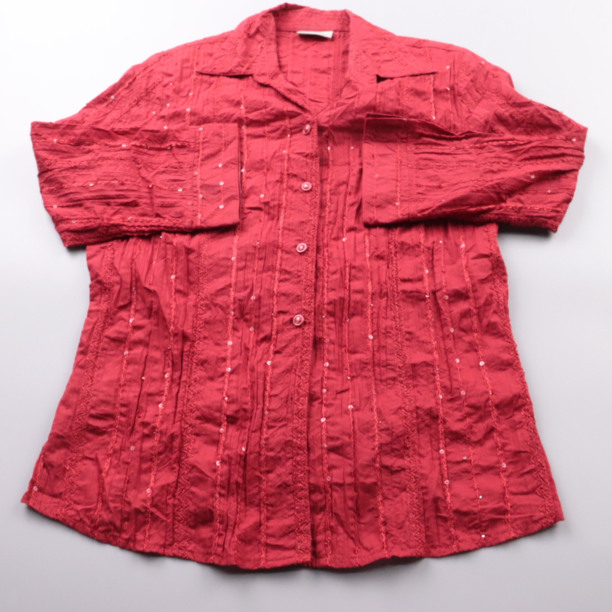 Женская блузка Canda (Collection at C&A) красного цвета с фактурной тканью и аккуратной застёжкой на пуговицы. Подойдёт для лета и тёплой погоды, можно носить как самостоятельный верх или как лёгкий слой поверх топа. Практична в уходе и быстро сохнет б...