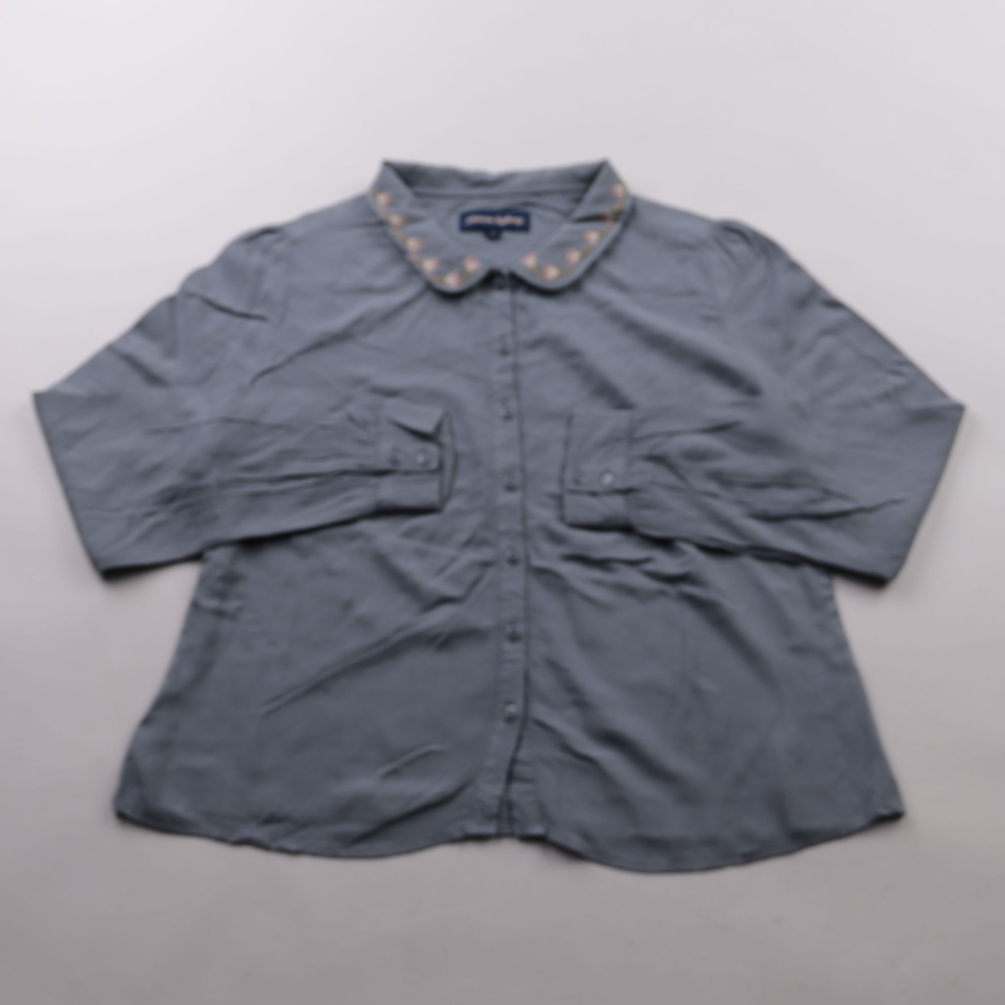 Женская рубашка Princess Highway серо-синего оттенка с застёжкой на пуговицы и декоративной отделкой на воротнике. Подойдёт для повседневных образов и офиса в тёплое время года или как слой под жакет. Ткань на основе вискозы с добавлением льна приятна ...