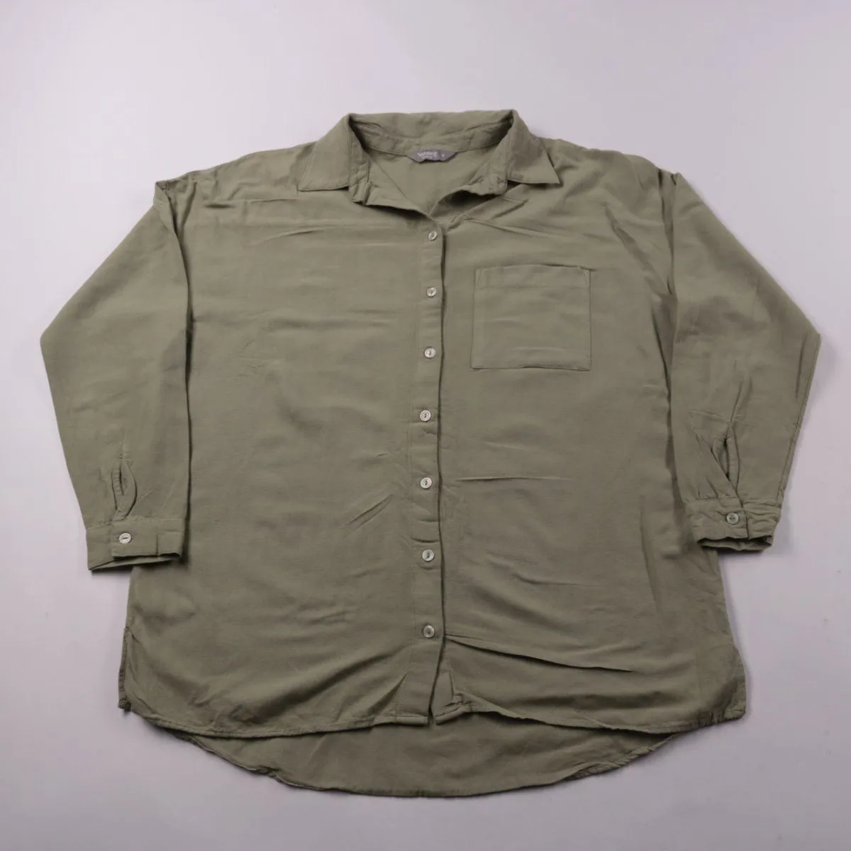 Женская рубашка Nutmeg цвета хаки с длинным рукавом и застёжкой на пуговицы, есть нагрудный карман. Подойдёт для повседневных образов и офиса, можно носить навыпуск. Смесь вискозы, хлопка и льна хорошо дышит и комфортна в течение дня.