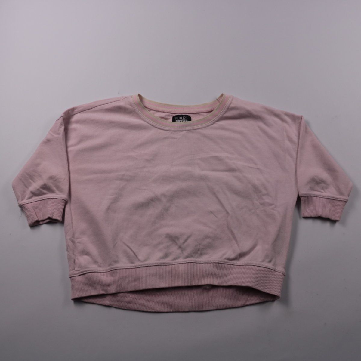 Укороченный свитшот Future Past нежно-розового цвета, размер XS, без капюшона. Подойдёт для повседневных образов и прогулок в прохладную погоду, хорошо сочетается с джинсами и юбками с высокой талией. Натуральный хлопок приятен к телу и дышит, манжеты и пояс держат форму.