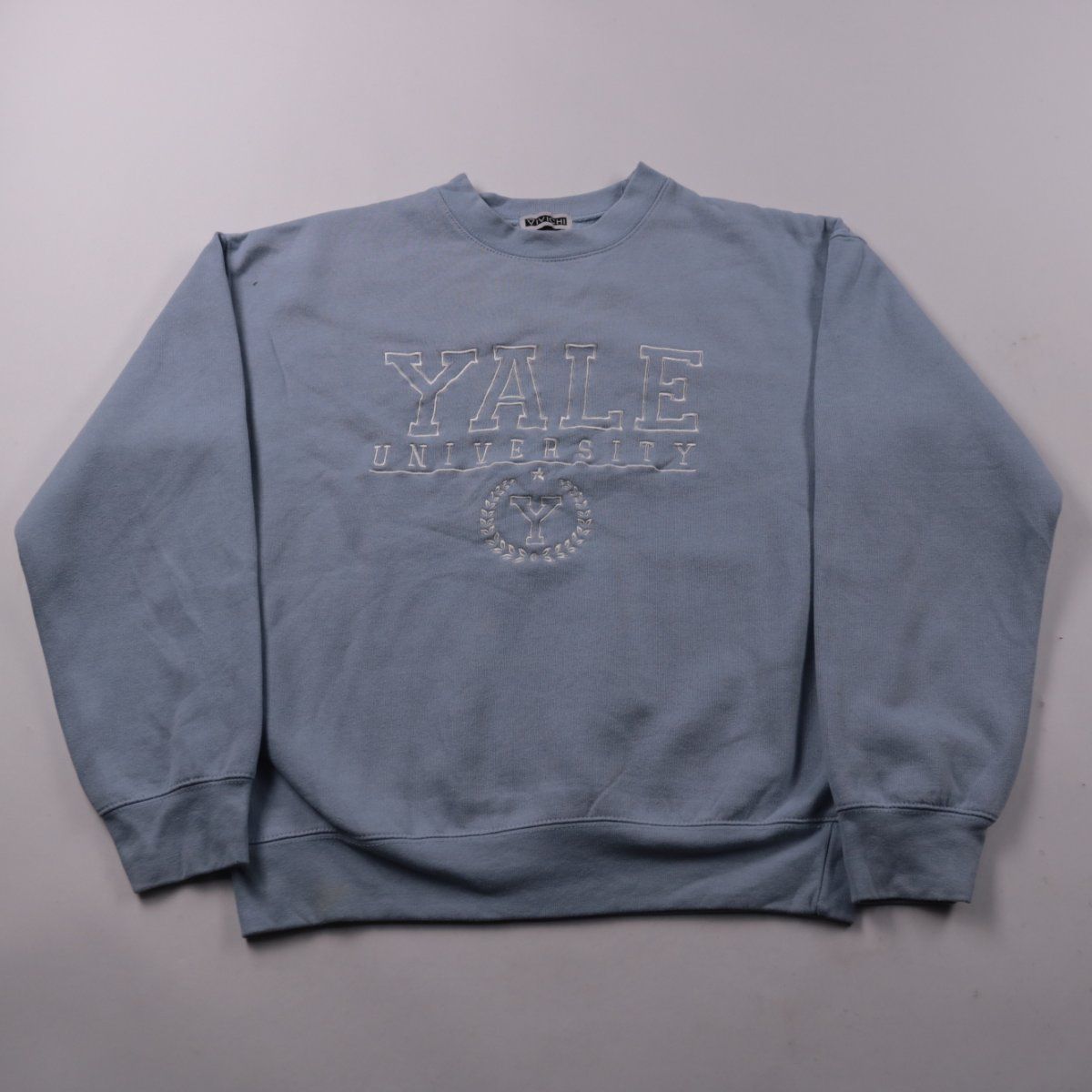 Свитшот Vinchi голубого цвета с объёмной вышивкой Yale University на груди. Подойдёт для повседневных образов и учёбы в прохладную погоду. Практичный состав хлопок/полиэстер — проще в уходе и быстрее сохнет.