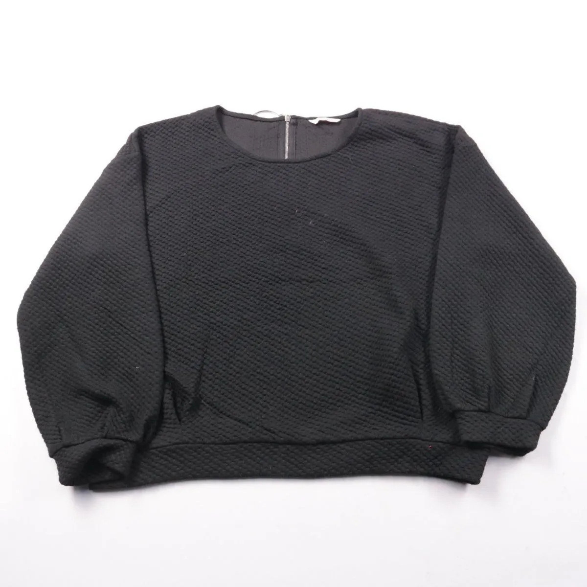 Женский свитшот Camaieu чёрного цвета с фактурной тканью и молнией на спинке с кольцом. Подойдёт для повседневных образов в демисезон и прохладные летние вечера. Практичен тем, что легко сочетается с джинсами и юбками и не требует сложного ухода.