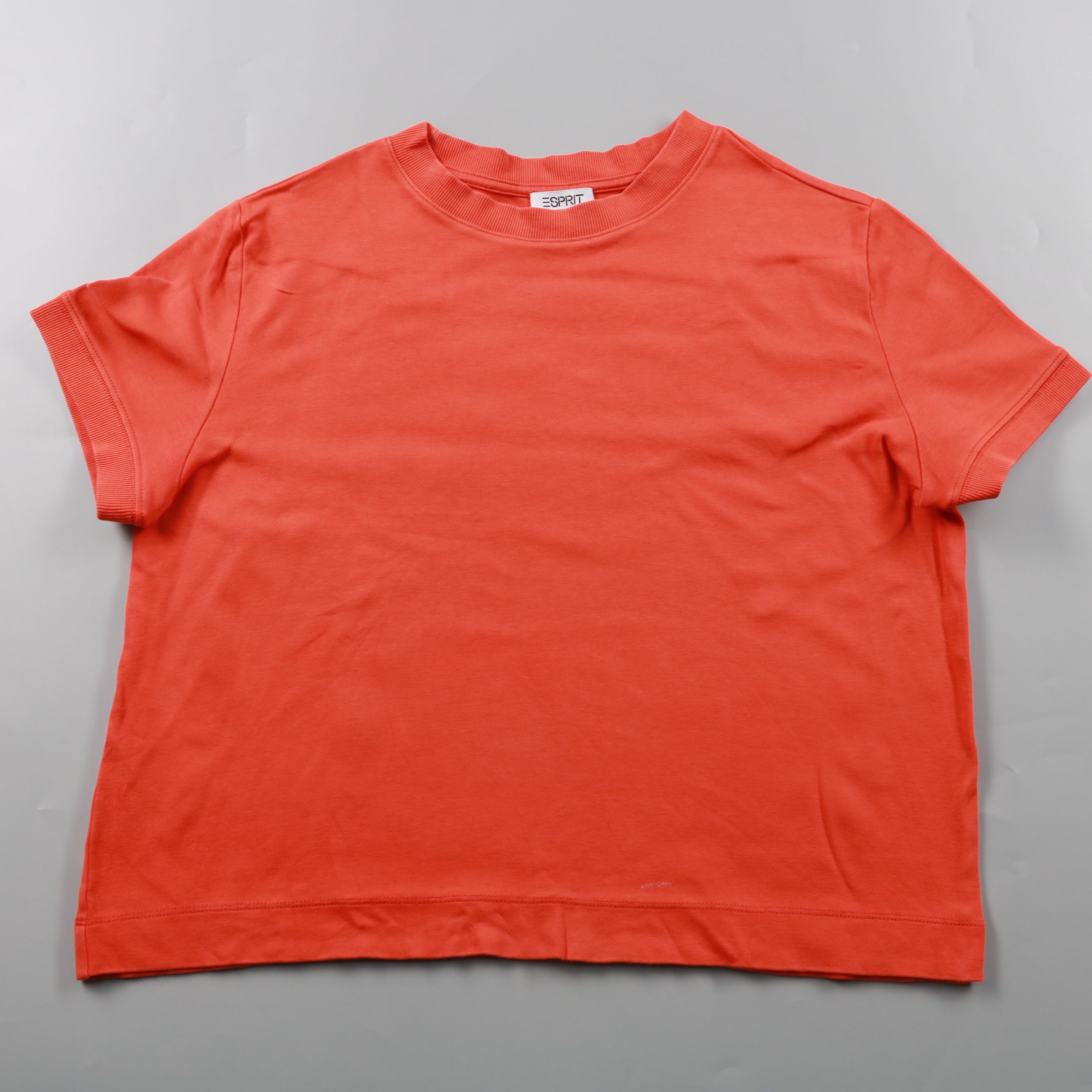 Женская футболка Esprit яркого оранжево-кораллового цвета, прямого кроя с круглым вырезом. Манжеты рукавов и горловина выполнены из рибаны, поэтому футболка аккуратно держит форму и подходит на каждый день. Практична в уходе и хорошо сочетается с джинс...