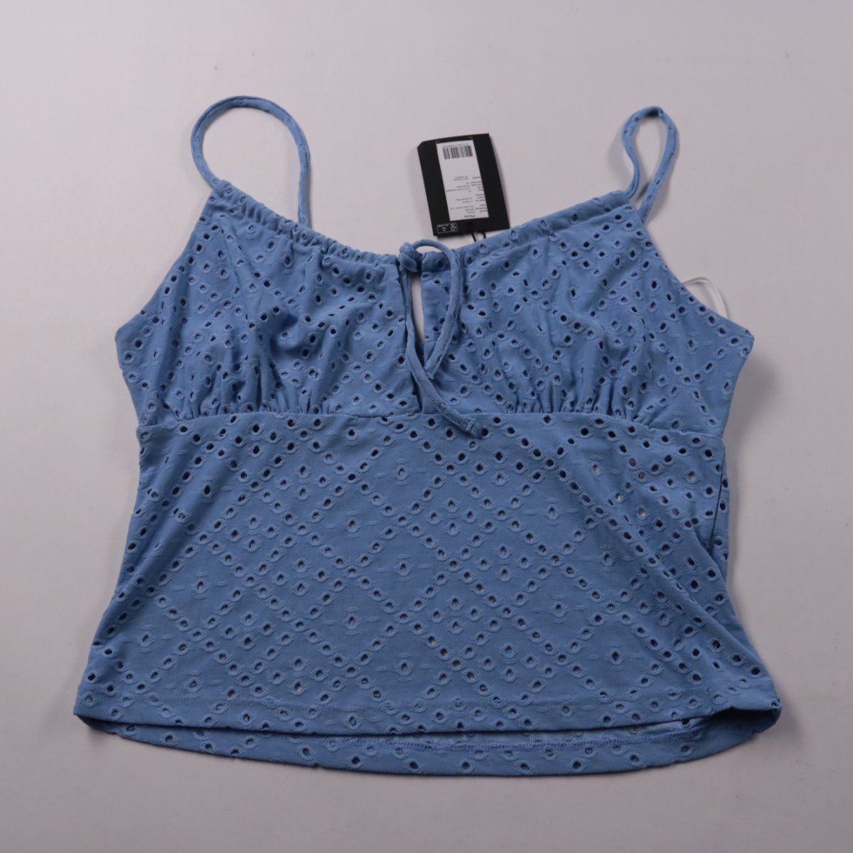 Топ Pieces на тонких бретелях из ткани с вышивкой ришелье, цвет Cornflower Blue. Подойдёт для летних образов с джинсами, шортами или юбкой, а также для отпуска. Лёгкий материал хорошо тянется и комфортно сидит по фигуре.