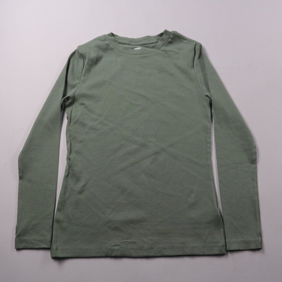 Женский лонгслив F&F в рубчик, цвет оливково-зелёный, с круглым вырезом и длинным рукавом. Подойдёт для повседневной носки и как базовый слой в прохладную погоду. Трикотажная фактура хорошо тянется и удобно садится по фигуре.