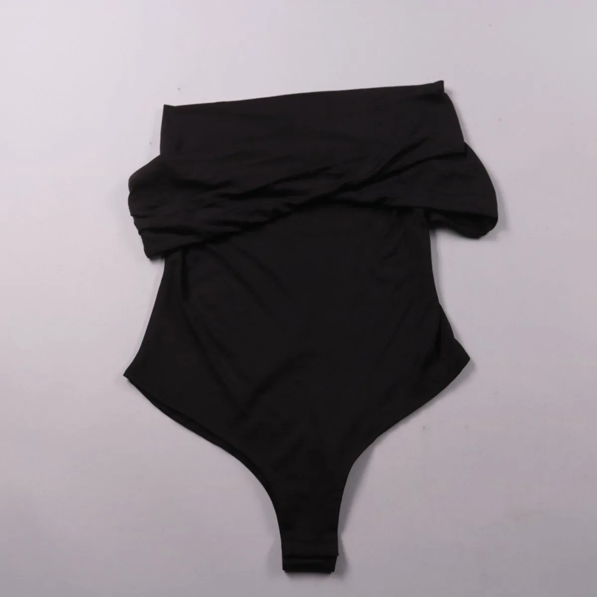Женское боди Cider чёрного цвета с открытыми плечами и драпировкой/перекрутом по линии верха. Подойдёт для вечерних образов и на выход, хорошо сочетается с юбками и джинсами. Эластичная ткань плотно сидит и удобно фиксируется за счёт формата боди.
