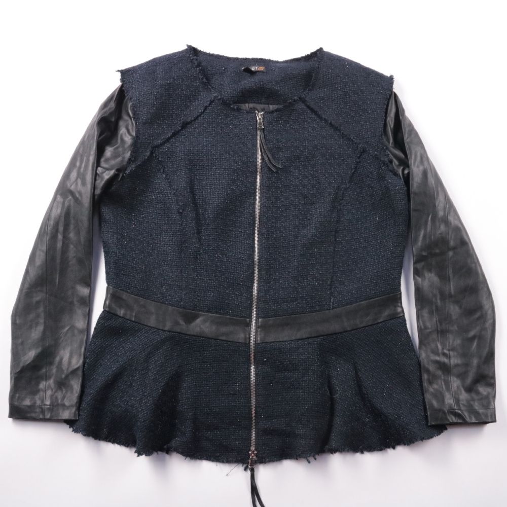 Демисезонная куртка Apart из фактурной ткани с рукавами из искусственной кожи и застёжкой на молнию. Приталенный силуэт с баской хорошо смотрится в городских и офисных образах в прохладную погоду. Практичный плюс — износостойкие рукава, которые легче о...