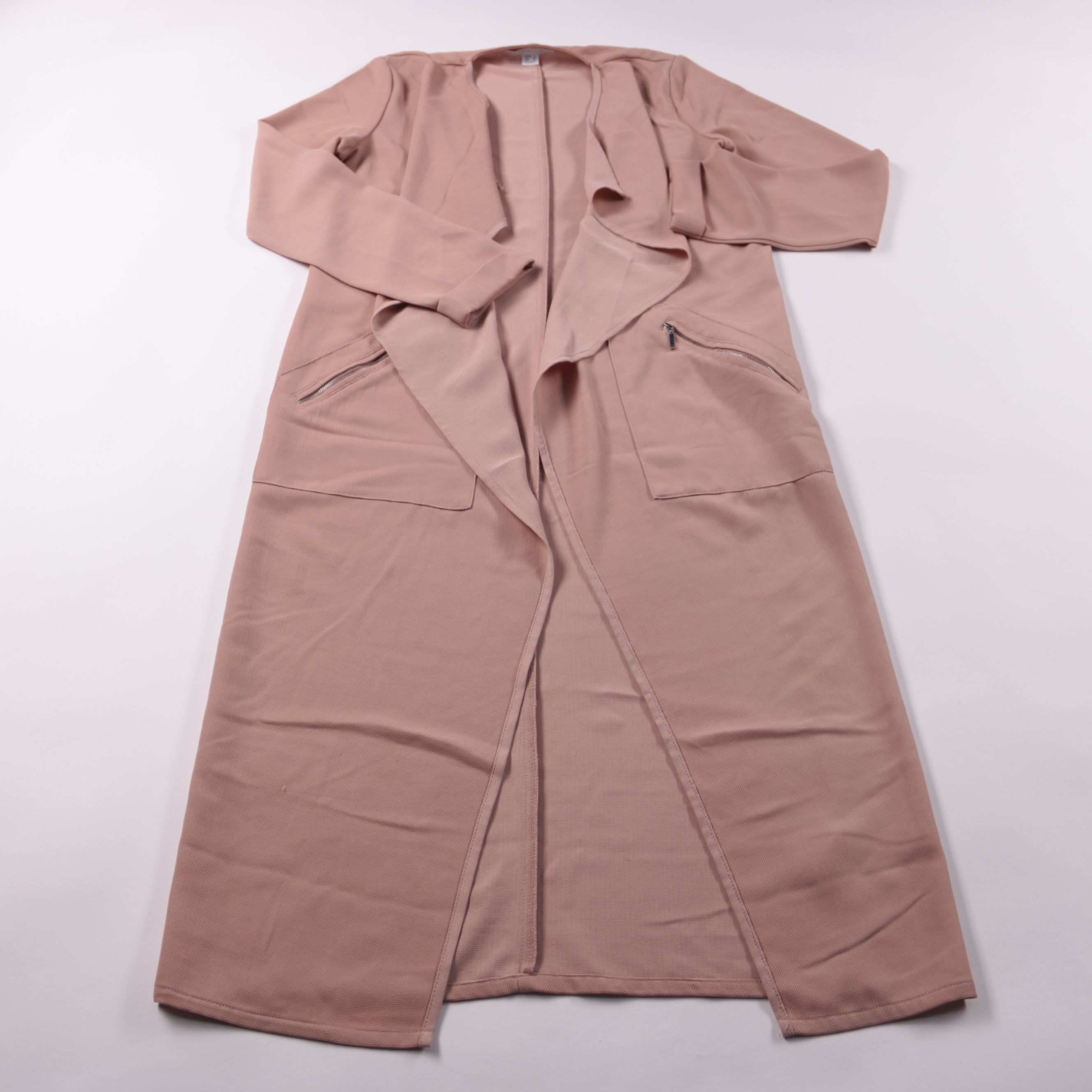 Лёгкое женское пальто Primark в пудрово-розовом оттенке, без застёжки, с драпированным воротником и карманами на молниях. Подойдёт для города и офиса в тёплую весну/осень и прохладные летние вечера. Мягкий трикотаж слегка тянется и комфортно садится по...