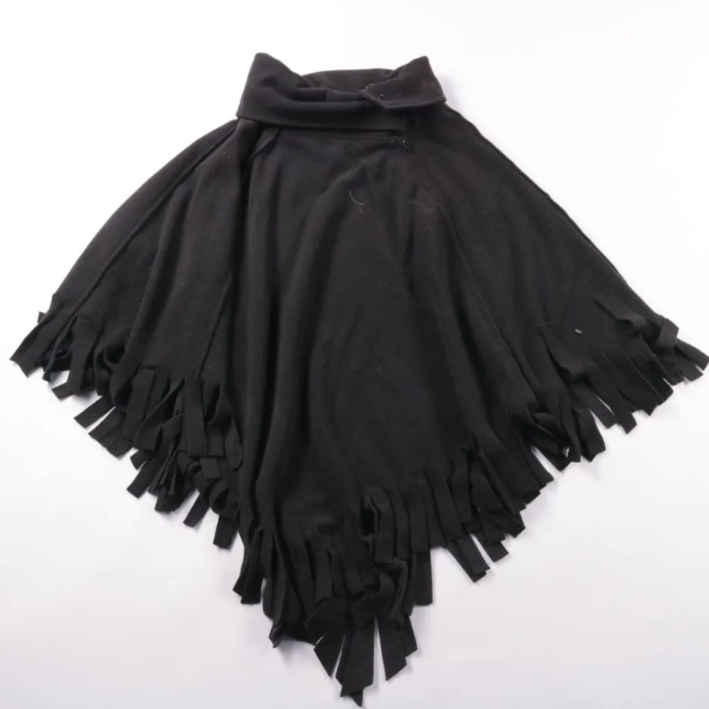 Чёрное пончо F.T.S.Y. Sport Edition из мягкого флиса с бахромой по низу. Подойдёт для прогулок и повседневных образов в прохладную погоду, удобно надевать поверх свитера. Практичный плюс — свободный крой не сковывает движения и хорошо скрывает многосло...