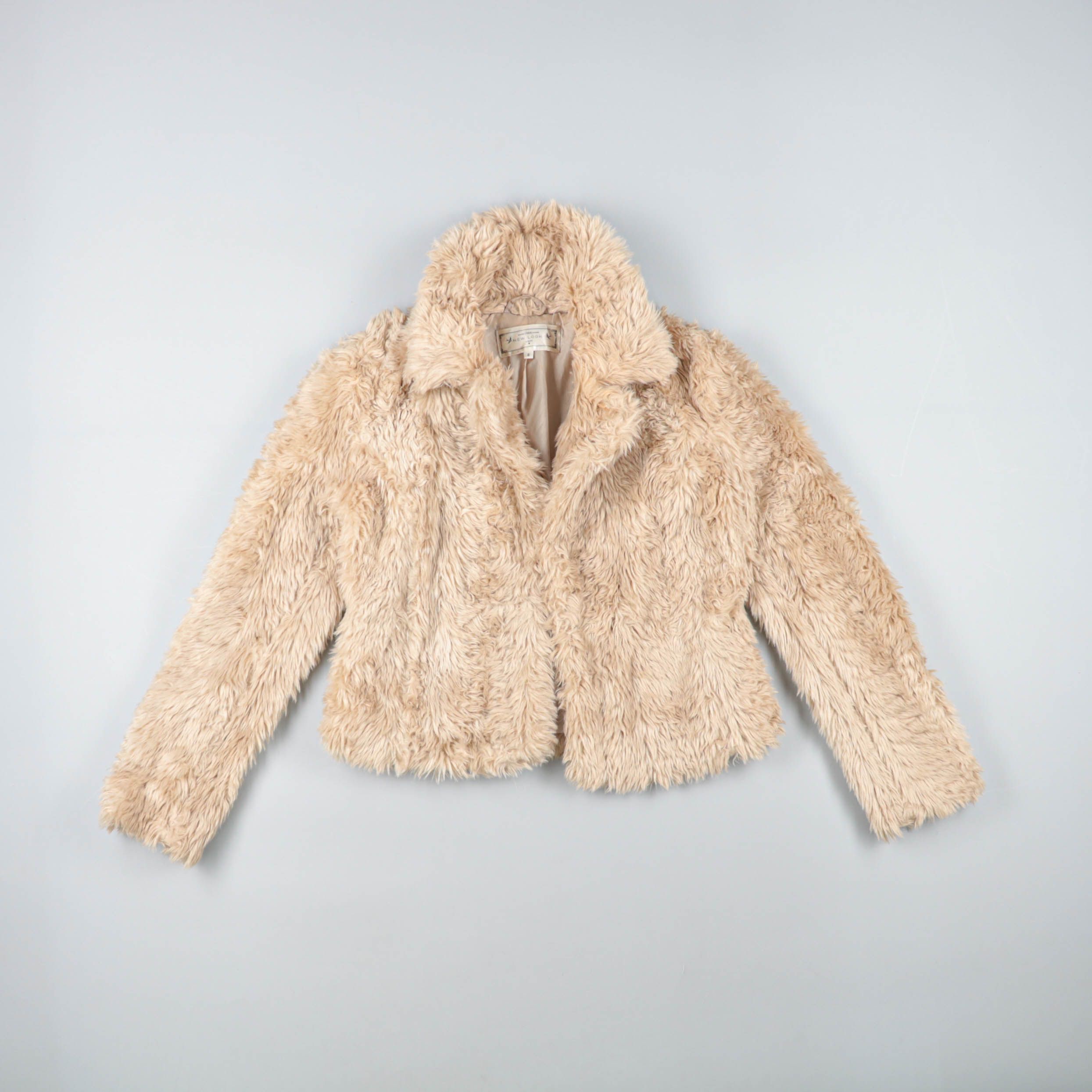 Короткая женская шуба из искусственного меха в бежевом цвете с отложным воротником. Подойдёт для повседневных образов в прохладную погоду — с джинсами, платьем или юбкой. Мягкий мех и подкладка делают её тёплой и комфортной в носке.
