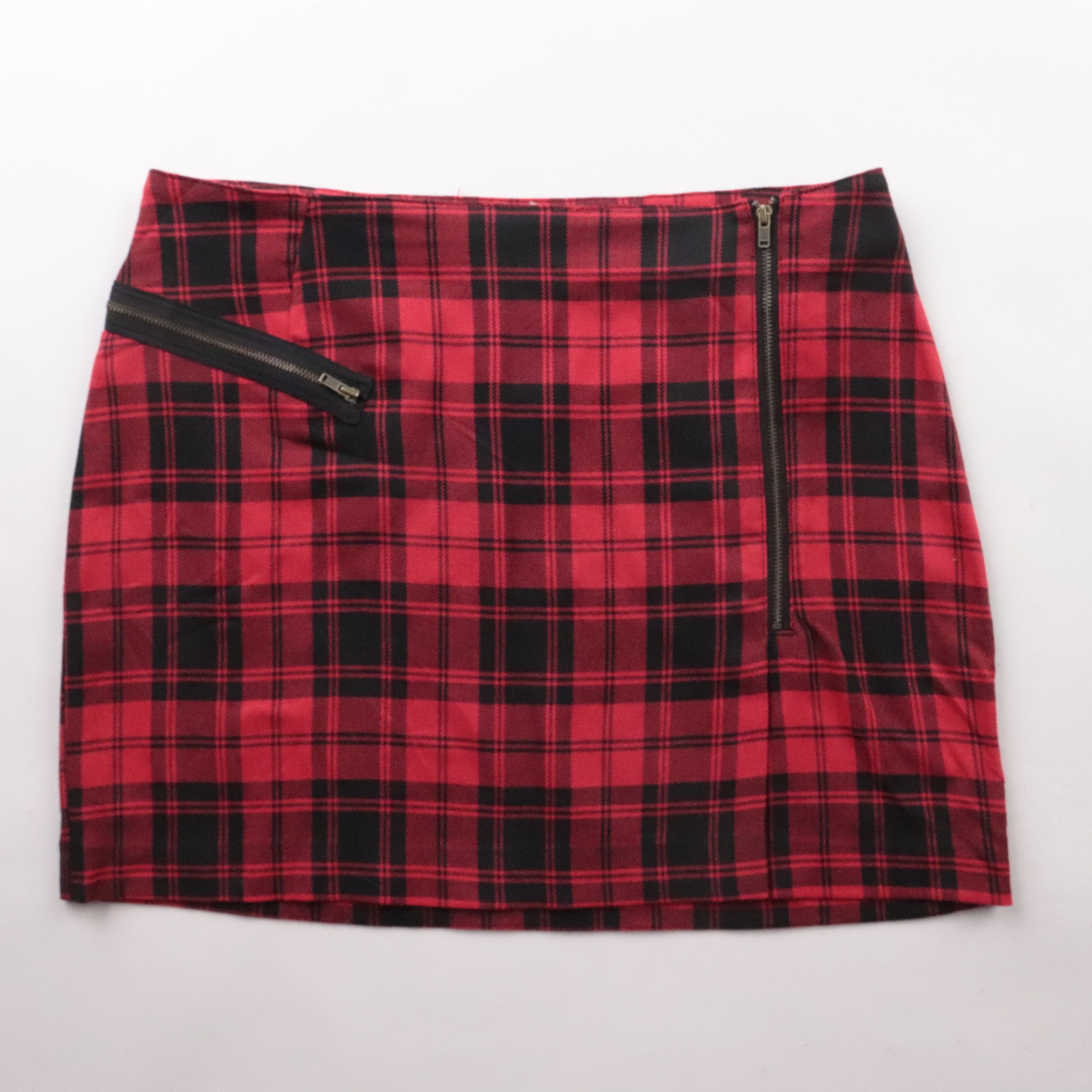 Юбка George в красно‑чёрную клетку, мини-длины, с декоративными молниями. Подойдёт для повседневных образов и вечеринок, хорошо сочетается с однотонными топами и косухой. Плотная ткань держит форму и комфортно садится за счёт эластана.