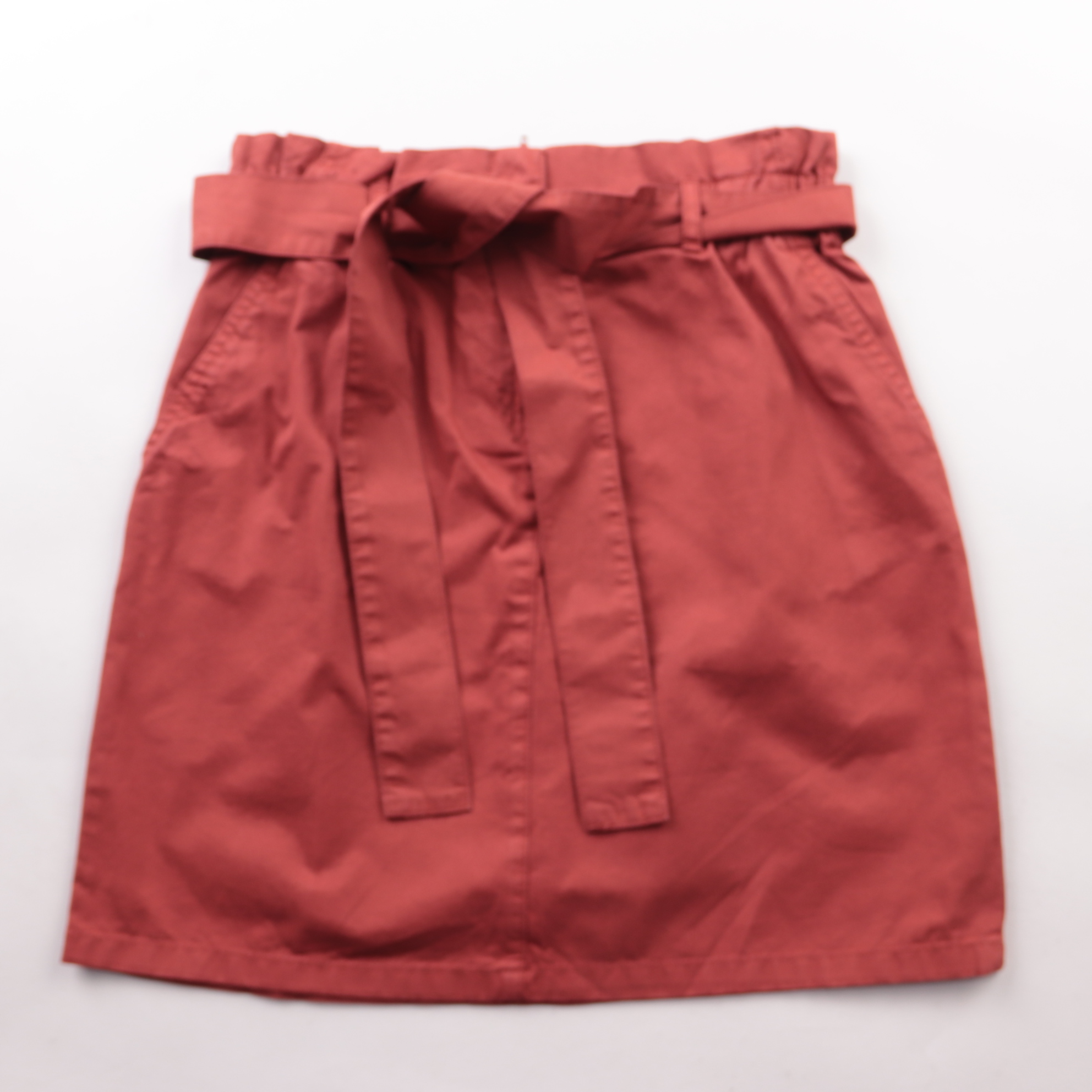 Юбка Etam терракотового оттенка с высокой талией и поясом-лентой. Подойдёт для летних и тёплых демисезонных образов с футболкой, рубашкой или топом. Натуральный хлопок приятен к телу и хорошо дышит.